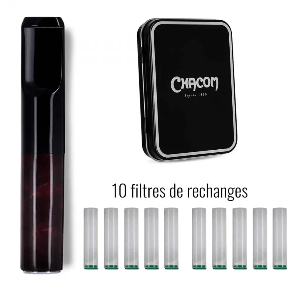 Acrylic cigarette holder pipe. Body in metal and briar. Compatible with king size cigarettes (classic size).