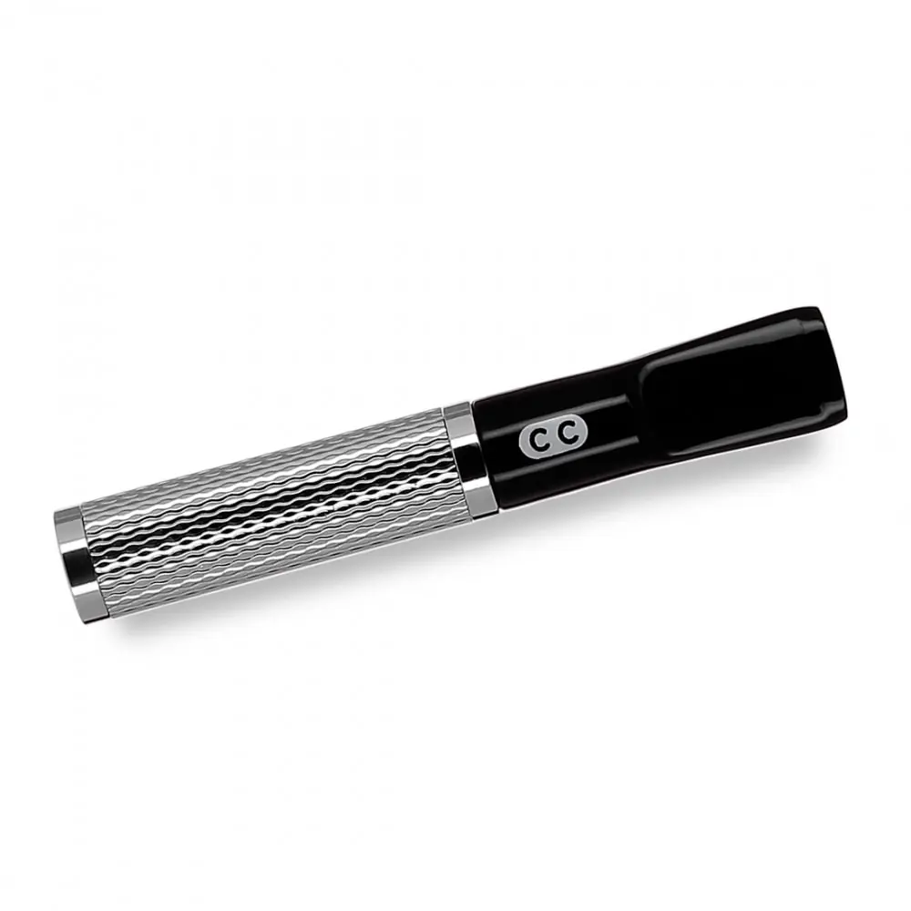Elegant cigarette holder whose metal body is decorated with small engraved waves. A short cigarette holder since it is only 7 cm long and in which there is a 6 mm diameter filter which will soften the smoke and reduce nicotine and tar. A plus for this Chacom cigarette holder: a ring to add to transform it into a slim cigarette holder.
