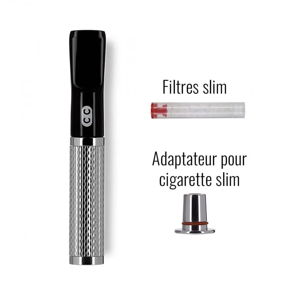 - Also compatible with slim cigarettes (vogue type): adapt the chrome tip in this case.