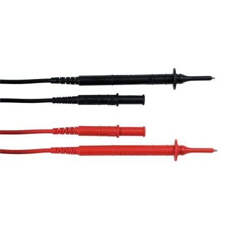 The Chauvin Arnoux P012 series PVC leads with built in test probes and the length of the leads is the 1.5 m. This leads have insulated straight male plug and current capacity of 15 A.Colour of the lead is the black and red