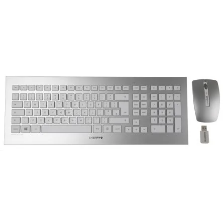 Cherry DW 8000 Wireless Keyboard and Mouse Set, QWERTY (UK), Silver - JD-0310GB