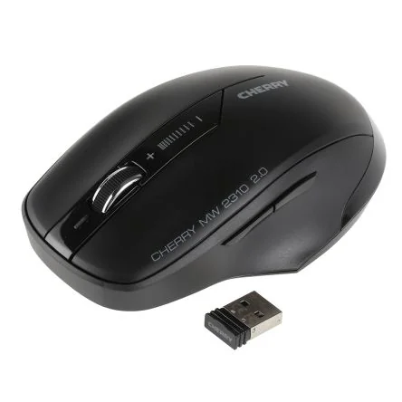 Cherry MW 2310 Mouse. The Cherry MW 2310 is multi-purpose an ergonomic designed wireless mouse. Reliable, practical and flexible. A sophisticated wireless 5 button mouse from Cherry. For people looking for superior a performance. 5-button mouse: infrared sensor and adjustable resolution (1000/1500/2000 dpi) Nano USB receiver: able to stay in the notebook permanently Optimised for both left handed and right handed operation Elegant touch due to the chrome plated scroll wheel with non-slip rubber coating Simple installation; no technical knowledge required Almost interference-free wireless 2.4 GHz technology (range of up to 10 m)