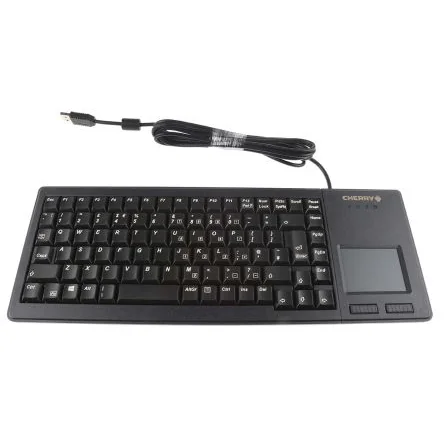 Ultra-slim Cherry keyboard with integrated touchpad, perfect for space-limited environments.