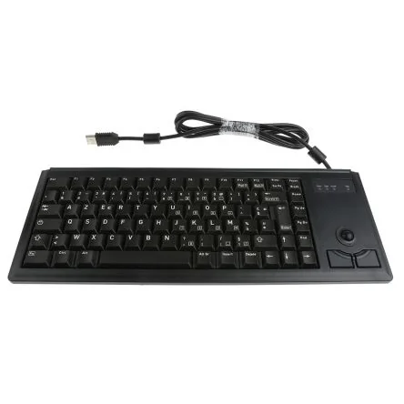 Cherry Compact Keyboard with Trackball - G84-4400. The ultra slim G84-4400 compact keyboards with built-in trackball are ideal wherever there is little space where several keyboards are in use at the same time or if you simply prefer a smaller design. Individual keys with Gold Crosspoint contacts (ML technology) Designed for continuous usage - over 20 mill. confirmations per key High level of reliability and unique precision confirmation feeling Integrated trackball plus 2 mouse keys Extremely flat - total height just 20 mm Lightweight 83/84 keyboard layout with all the functions of a standard keyboard Can be used with the standard drivers of the operating system Ideal for limited space 19" Applications, Slimline PCs and notebooks