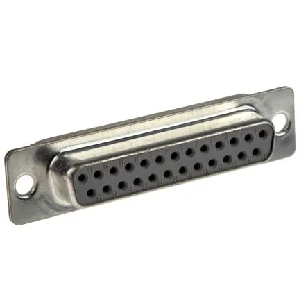 Reliable 25 way D-sub connector socket for efficient PCB connections.