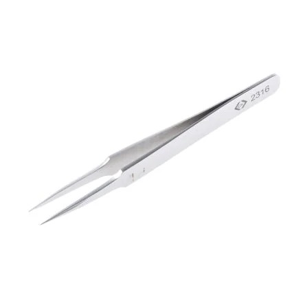 Tweezers – type 2316. Precision tweezers made from austenitic 18/10 stainless steel, anti-magnetic and resistant to acids, anti-reflective finish. Ultra-fine points.
