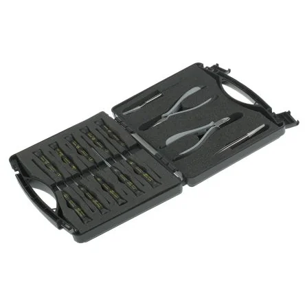 Essential 14-piece ESD tool kit for electronics, conveniently stored in a protective case.