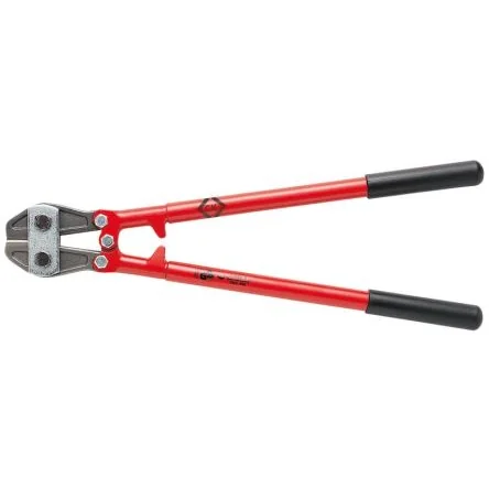 Bolt cutter. Bolt cutter with interchangeable forged head and ergonomic handgrips for cutting round materials. Head and jaws are manufactured in high-strength chrome-vanadium steel. The 450 mm-long model features an offset nut for easy adjustment and sharpening.