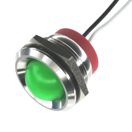 CML Innovative Technologies PL22SL Series Green Panel LED, 110V, 22mm Mounting Hole Size, Lead Wires Termination, IP67 - PL22SL125