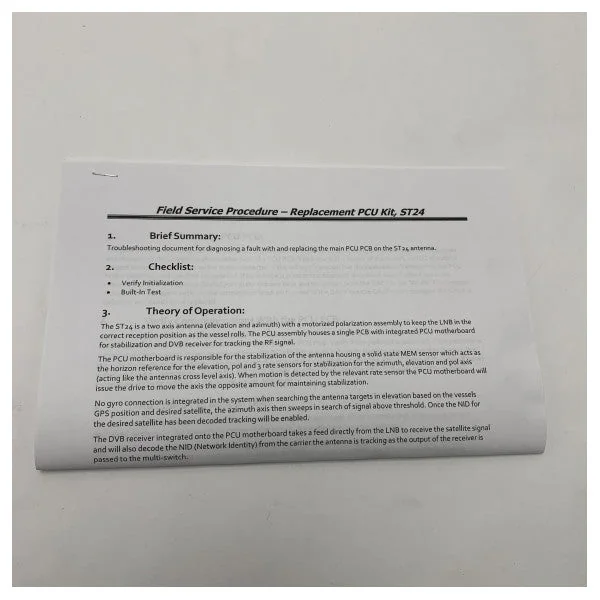 The Cobham Sea Tel 24 VSAT Replacement Kit PCU is a high-quality replacement package that guarantees optimal performance and easy installation on board. This product is specifically designed for maritime applications and provides reliable replacement of the PCU in the Sea Tel 24 antenna system, ensuring continuity of communication and signal reception.