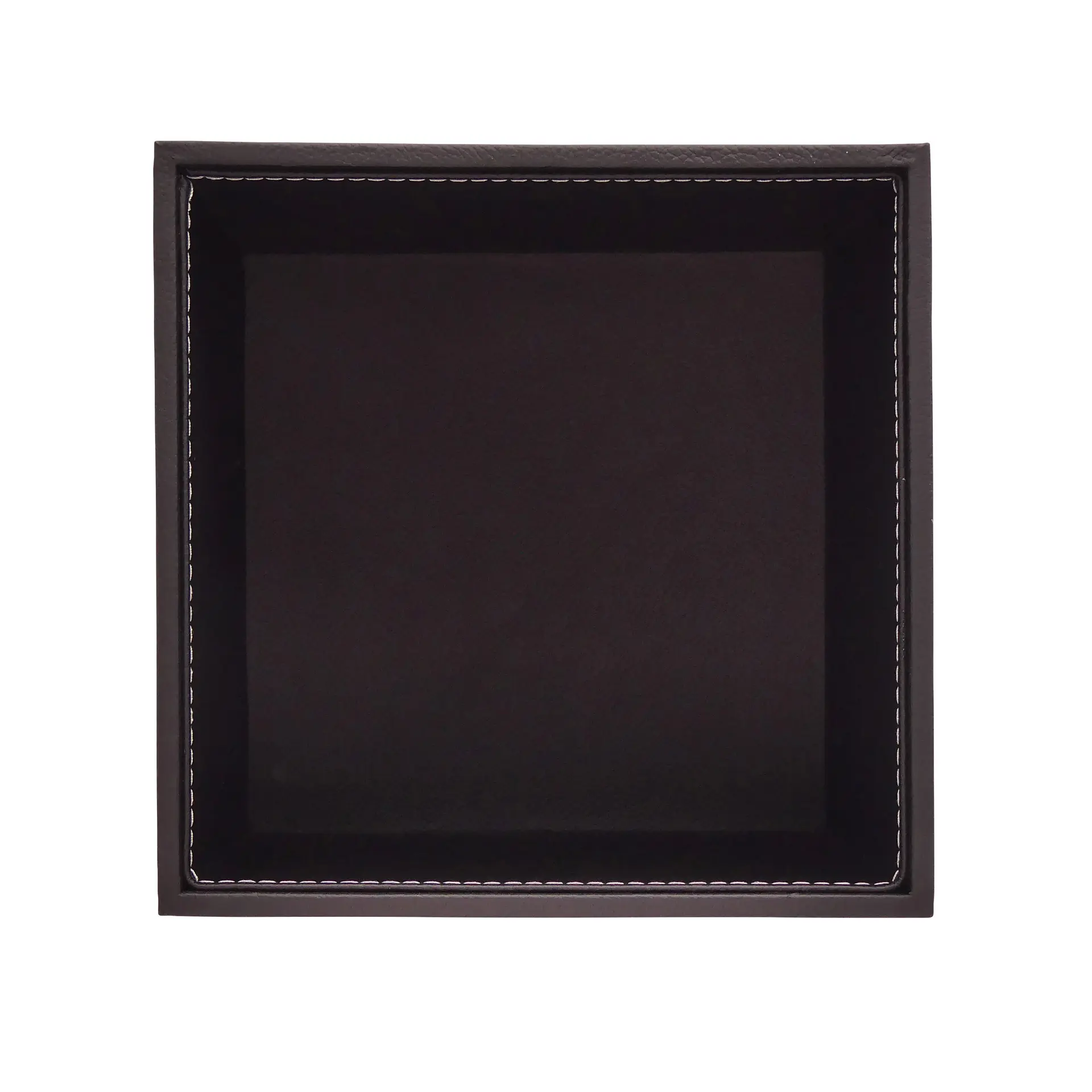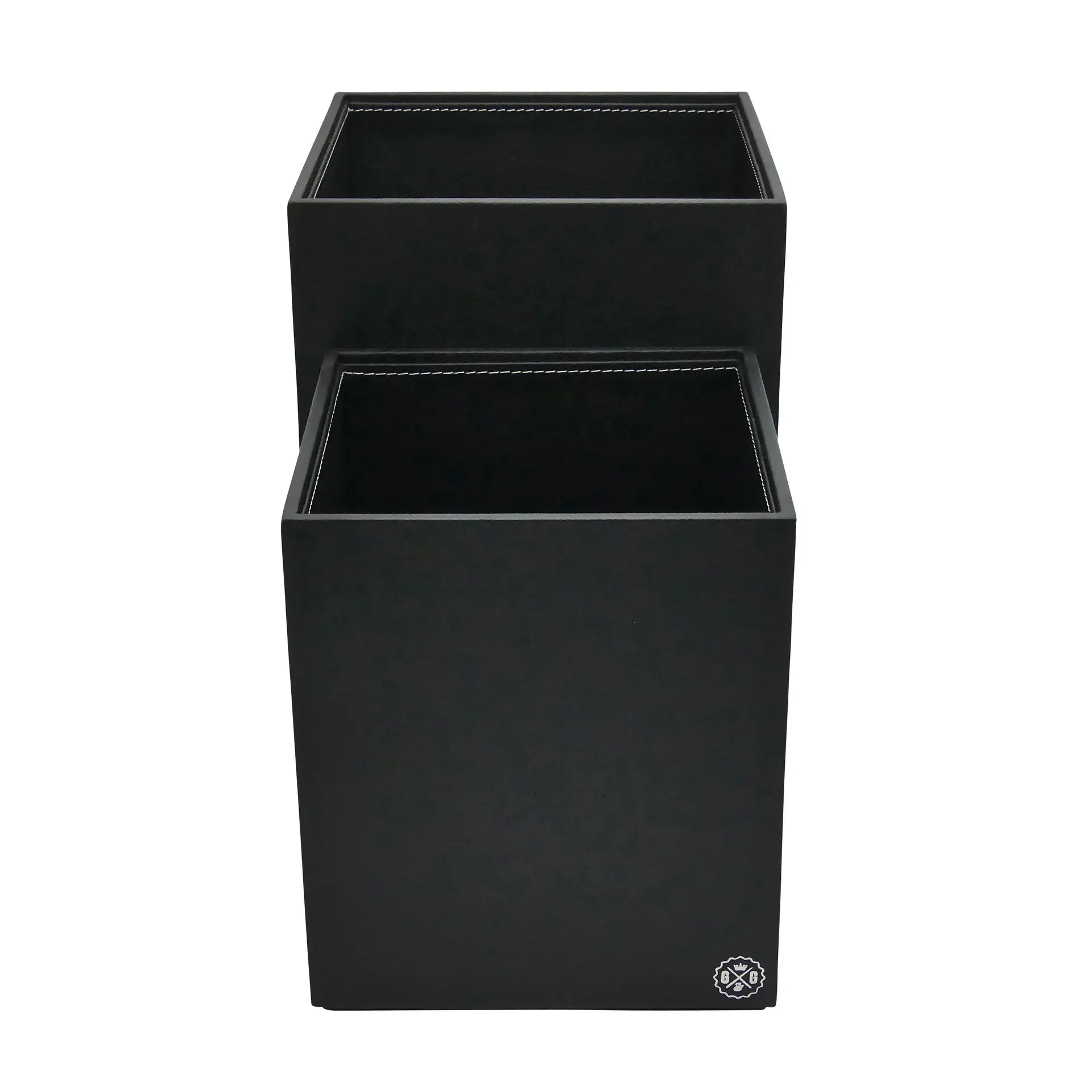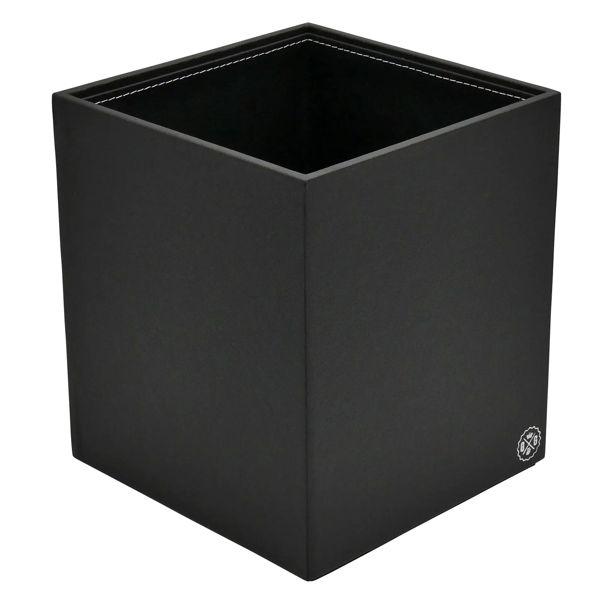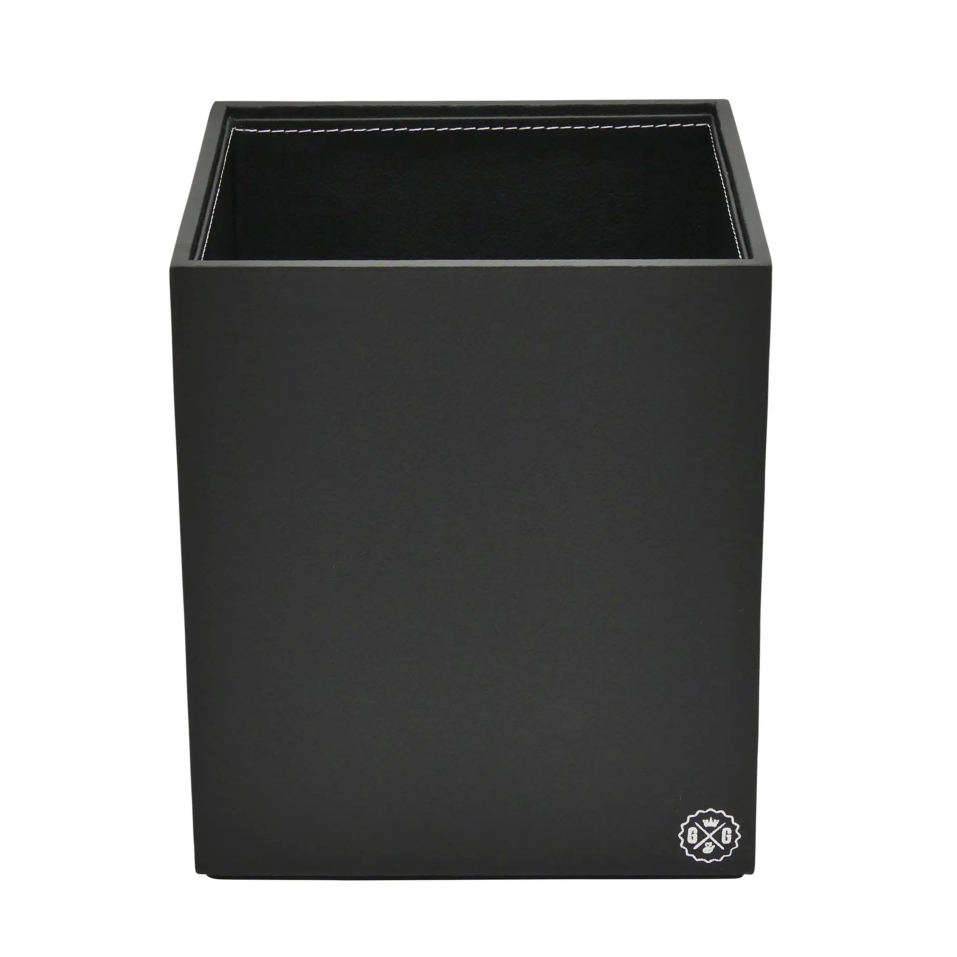 Collection Armand Black Ebony Leather Wastepaper Basket - Size Medium - 20,00cm x 20,00cm x 23,50cm - Weight : 950 Gr - Gordon & Gaia