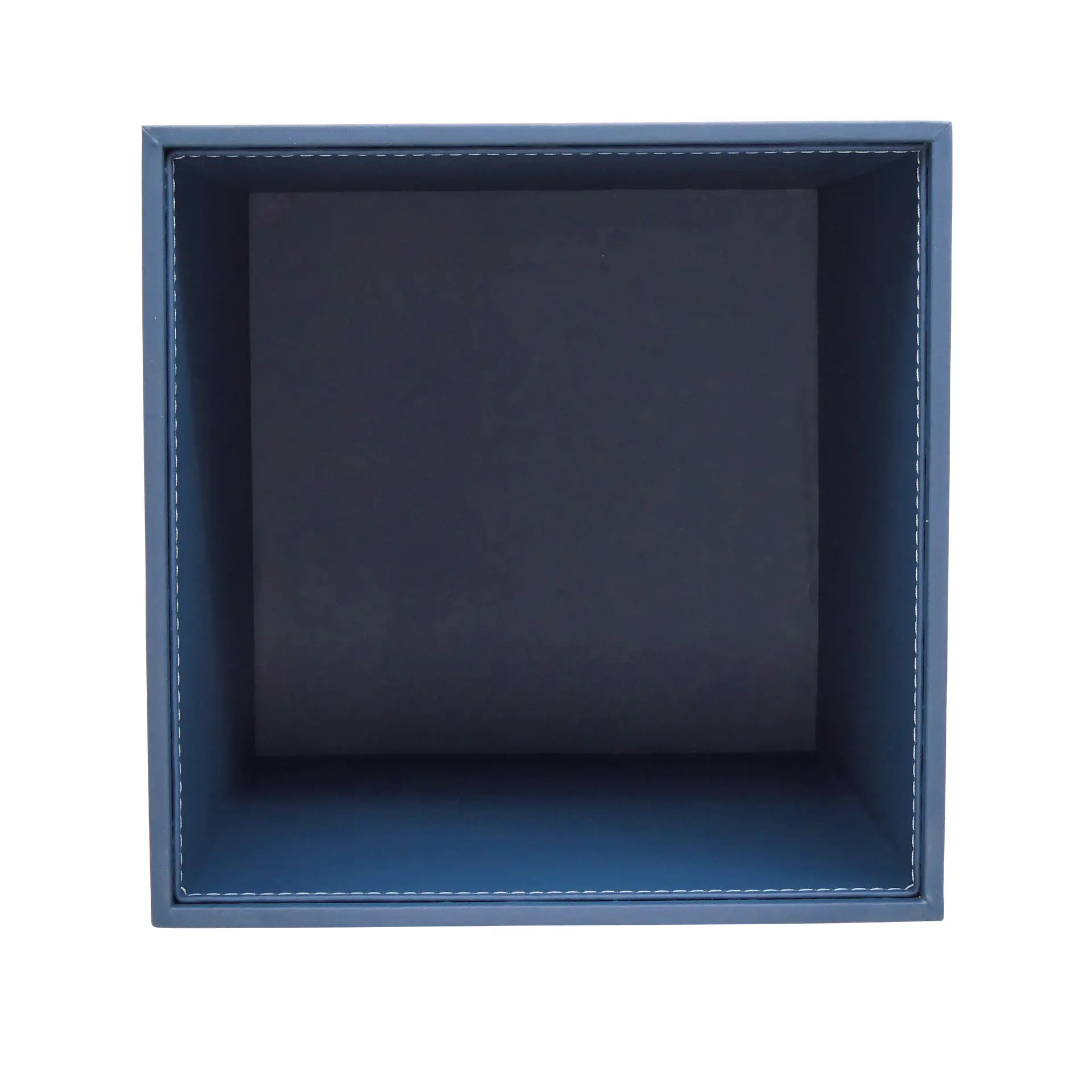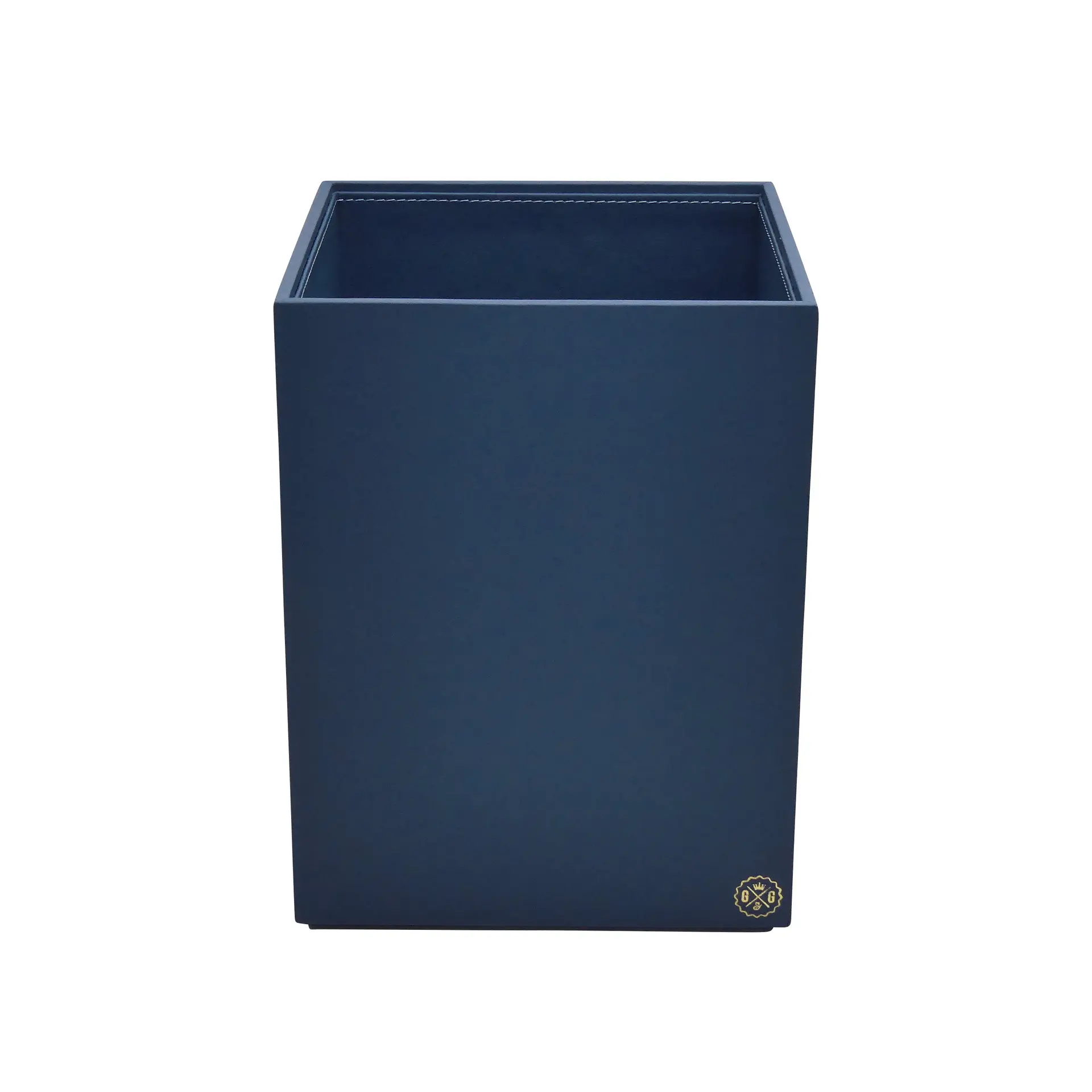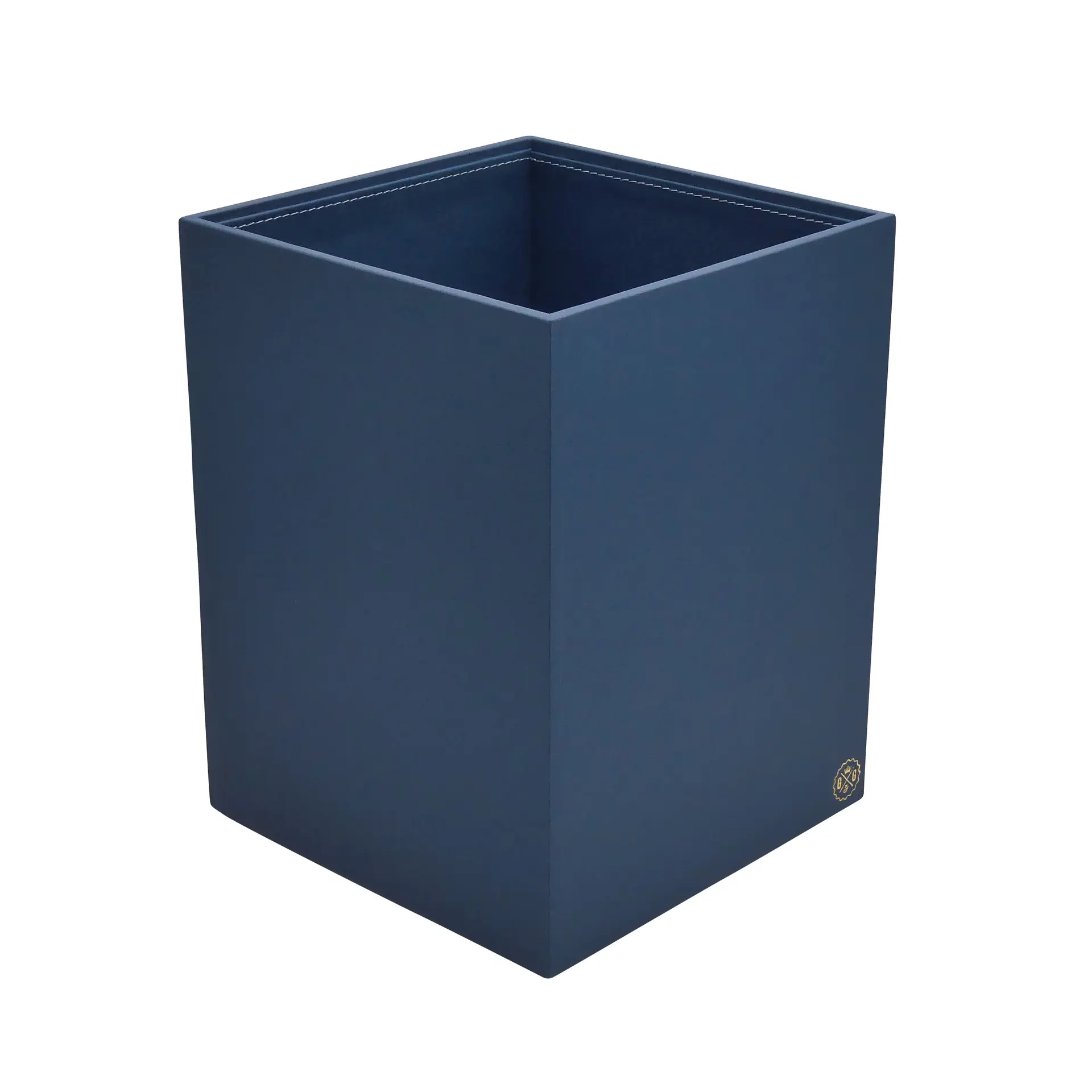 Collection Armand Blue Leather Wastepaper Basket - Size Large - 23,00cm x 23,00cm x 30,50cm - Weight : 1370 Gr - Gordon & Gaia