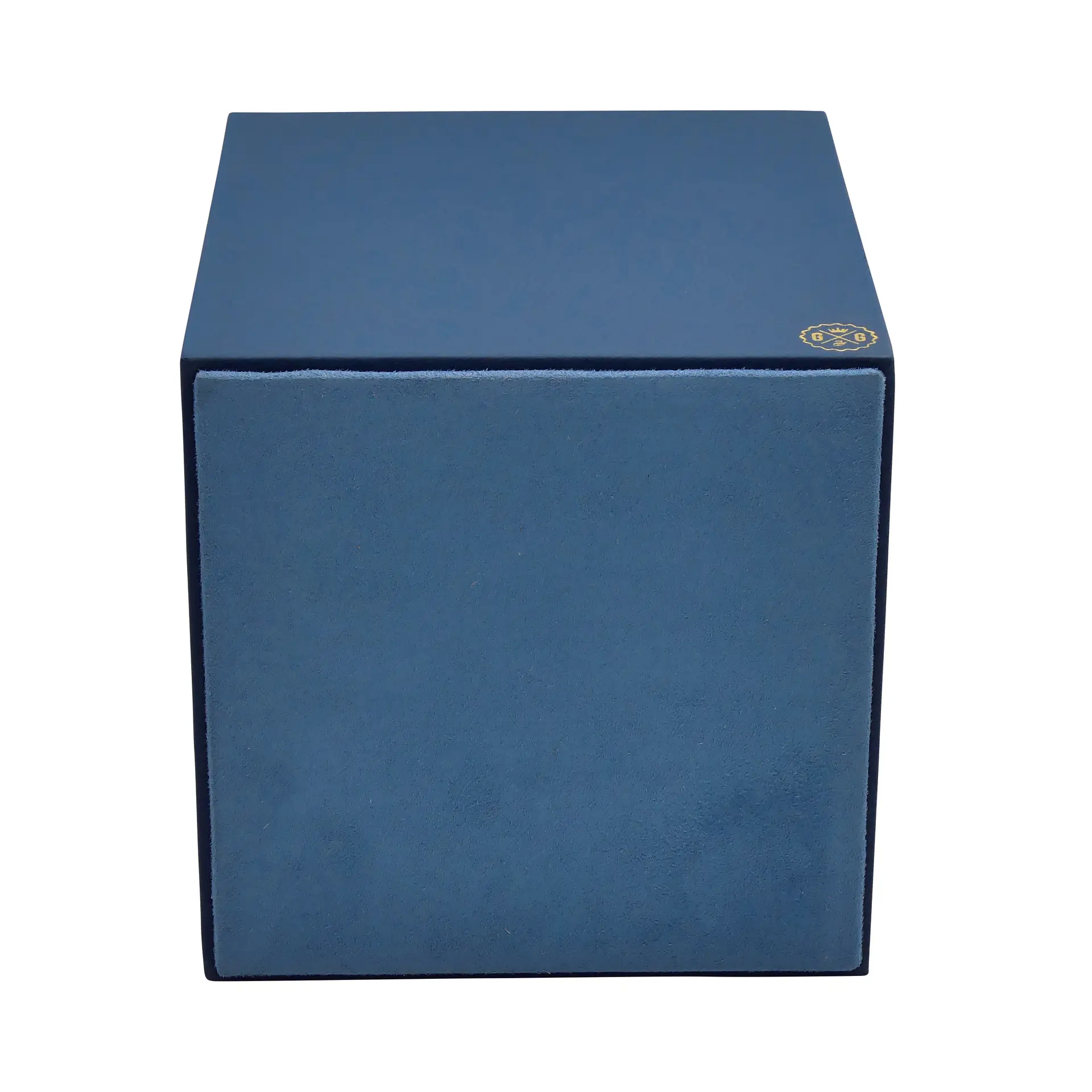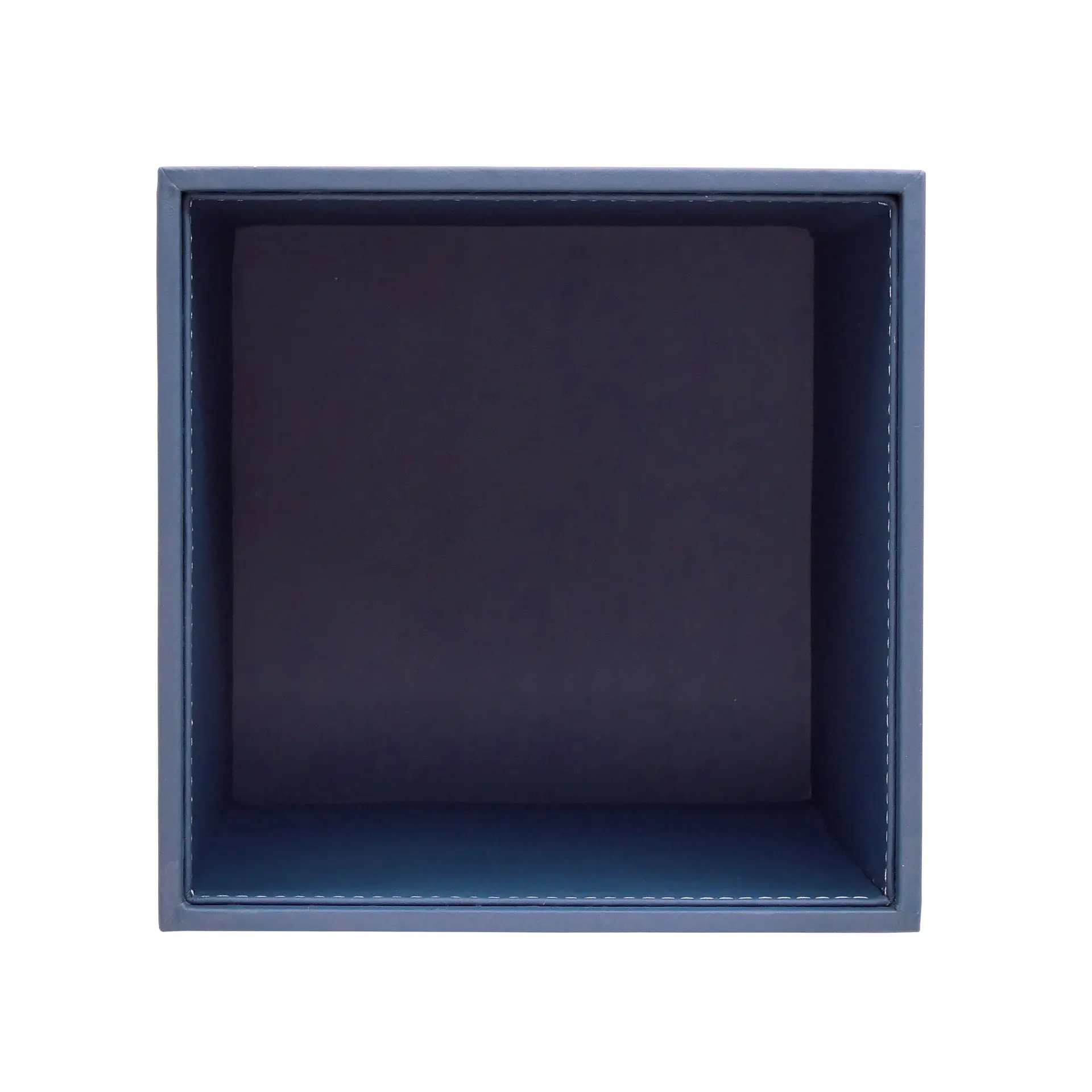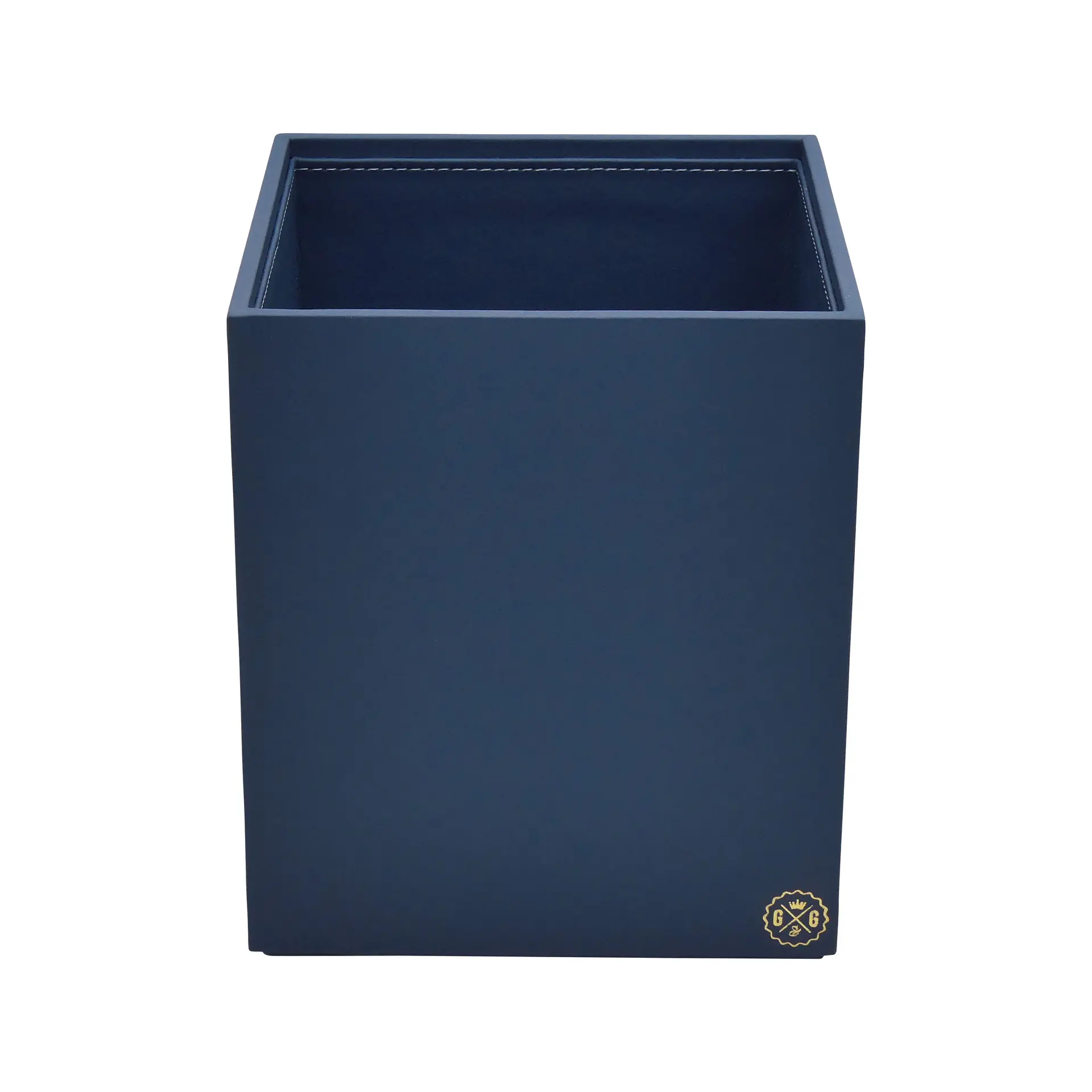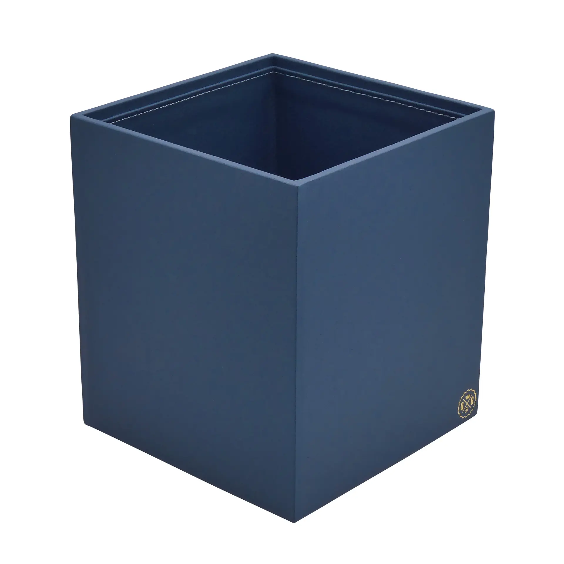 Collection Armand Blue Leather Wastepaper Basket - Size Medium - 20,00cm x 20,00cm x 23,50cm - Weight : 950 Gr - Gordon & Gaia