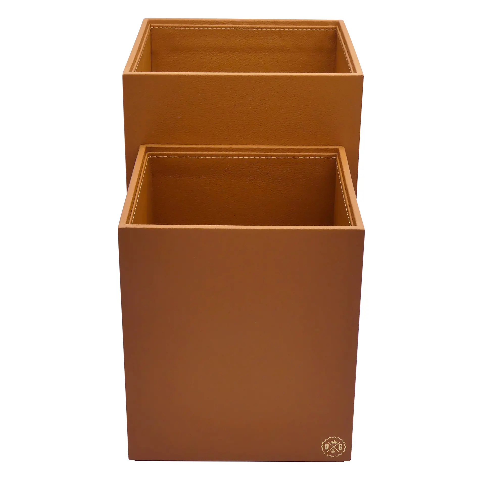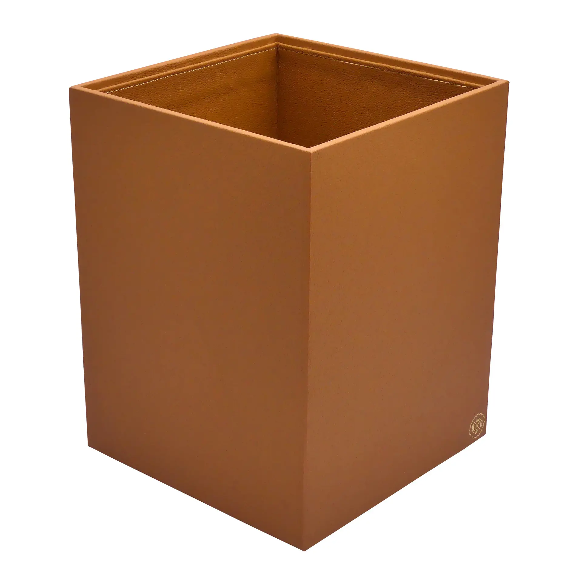 Collection Armand Cinnamon Leather Wastepaper Basket - Size Large - 23,00cm x 23,00cm x 30,50cm - Weight : 1370 Gr - Gordon & Gaia