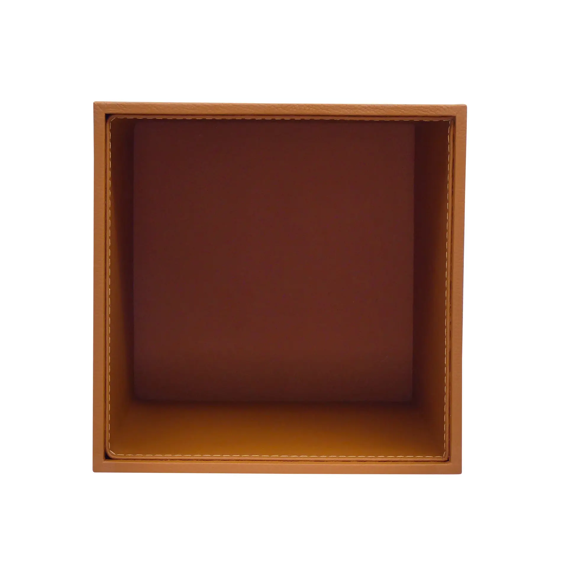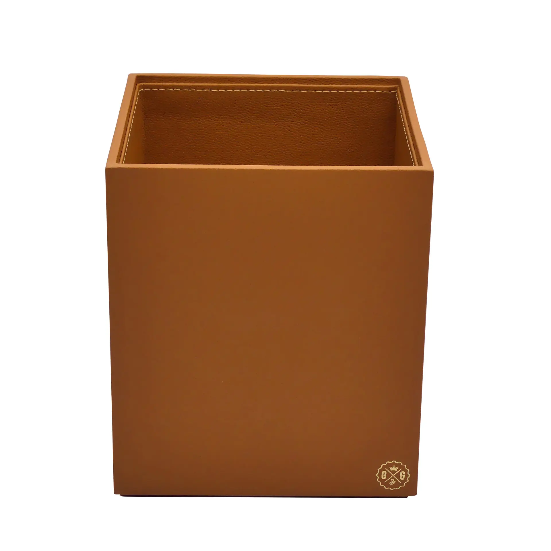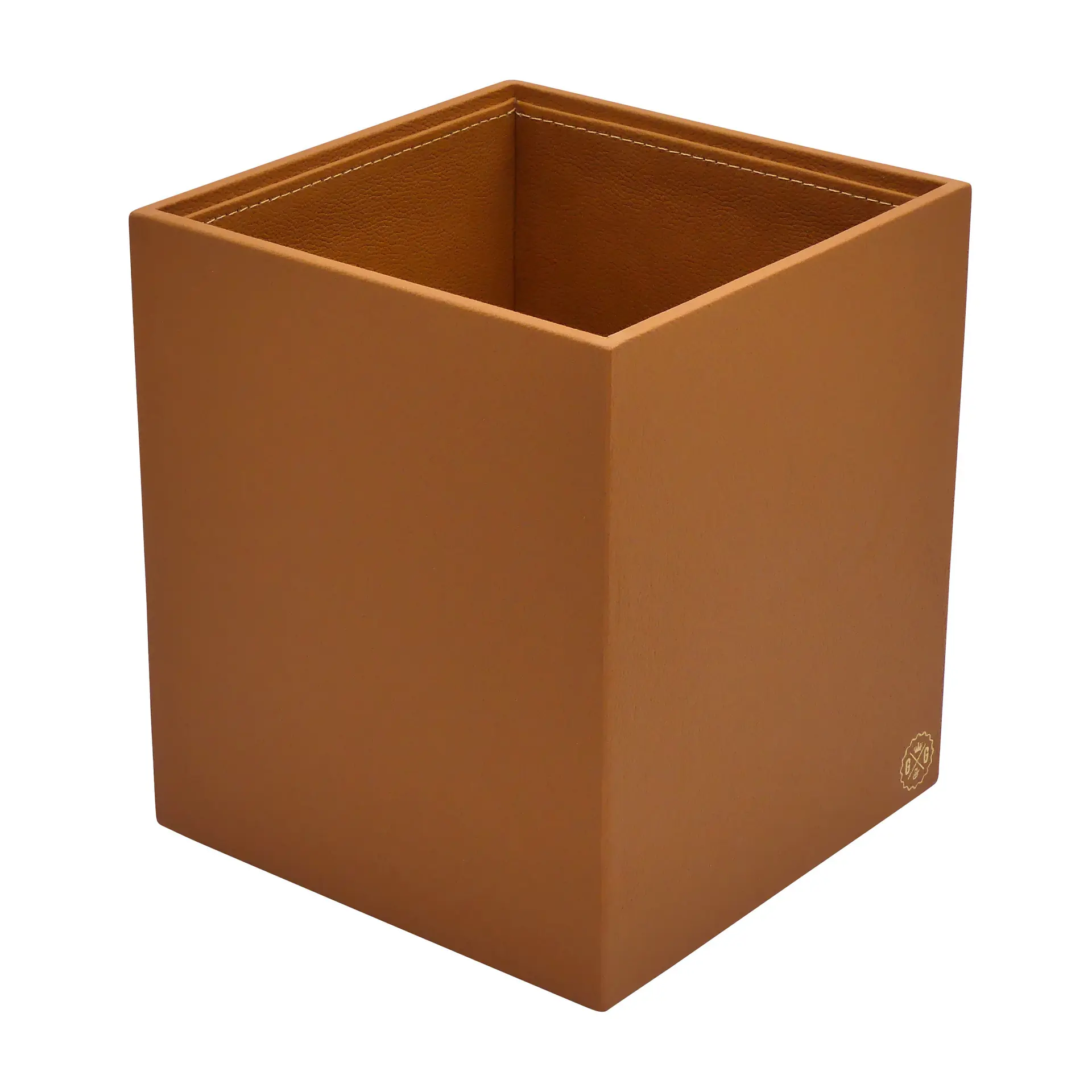 Collection Armand Cinnamon Leather Wastepaper Basket - Size Medium - 20,00cm x 20,00cm x 23,50cm - Weight : 950 Gr - Gordon & Gaia