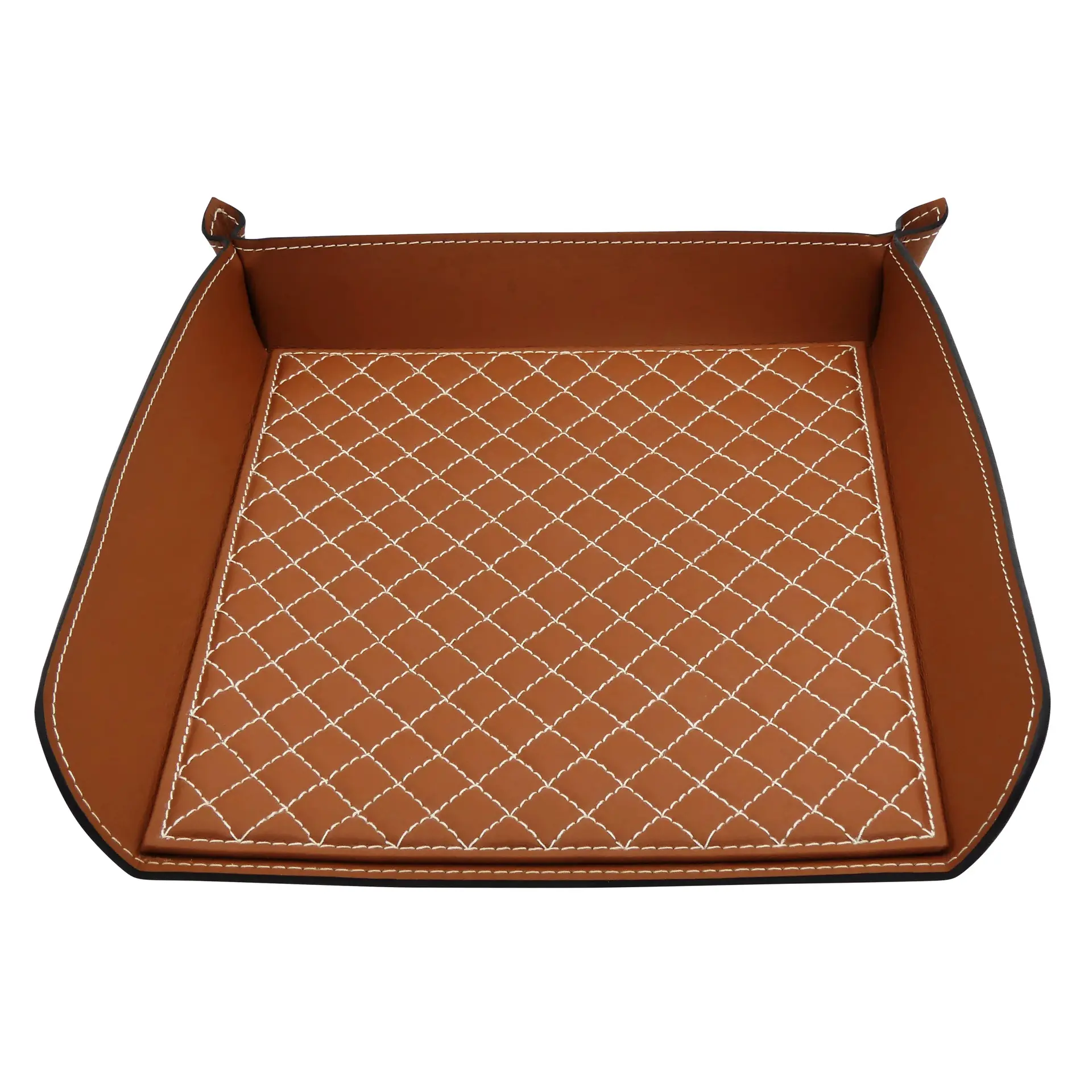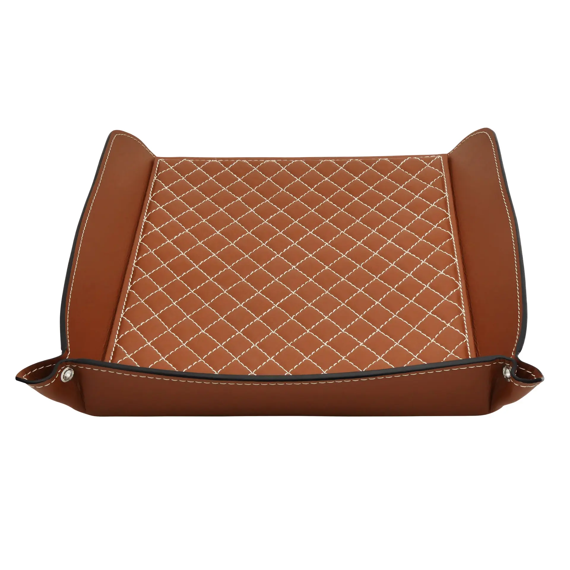 Elegant A4 leather letter tray with diamond stitching, perfect for organizing your office space.