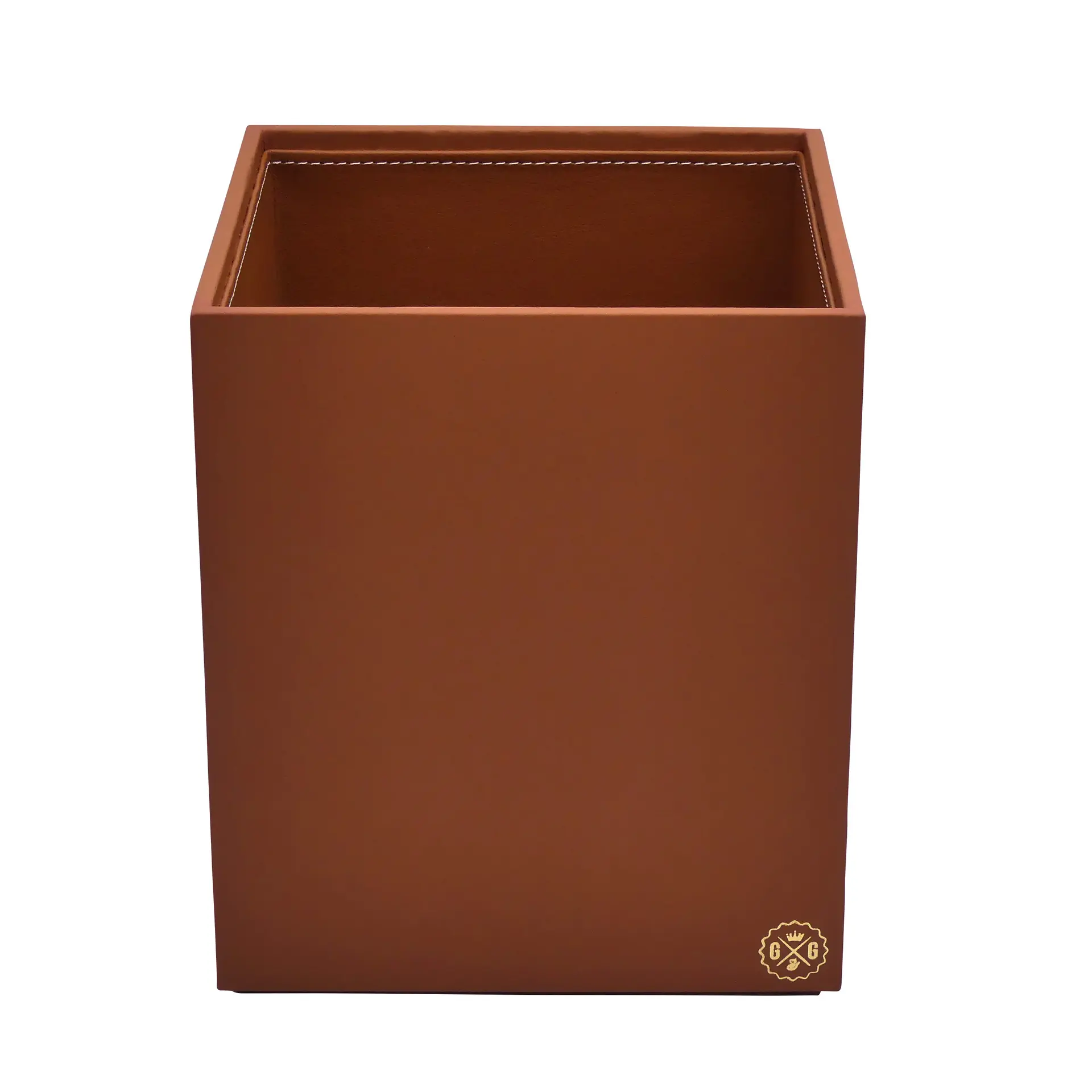 Collection Armand Light Brown Leather Wastepaper Basket - Size Medium - 20,00cm x 20,00cm x 23,50cm - Weight : 950 Gr - Gordon & Gaia