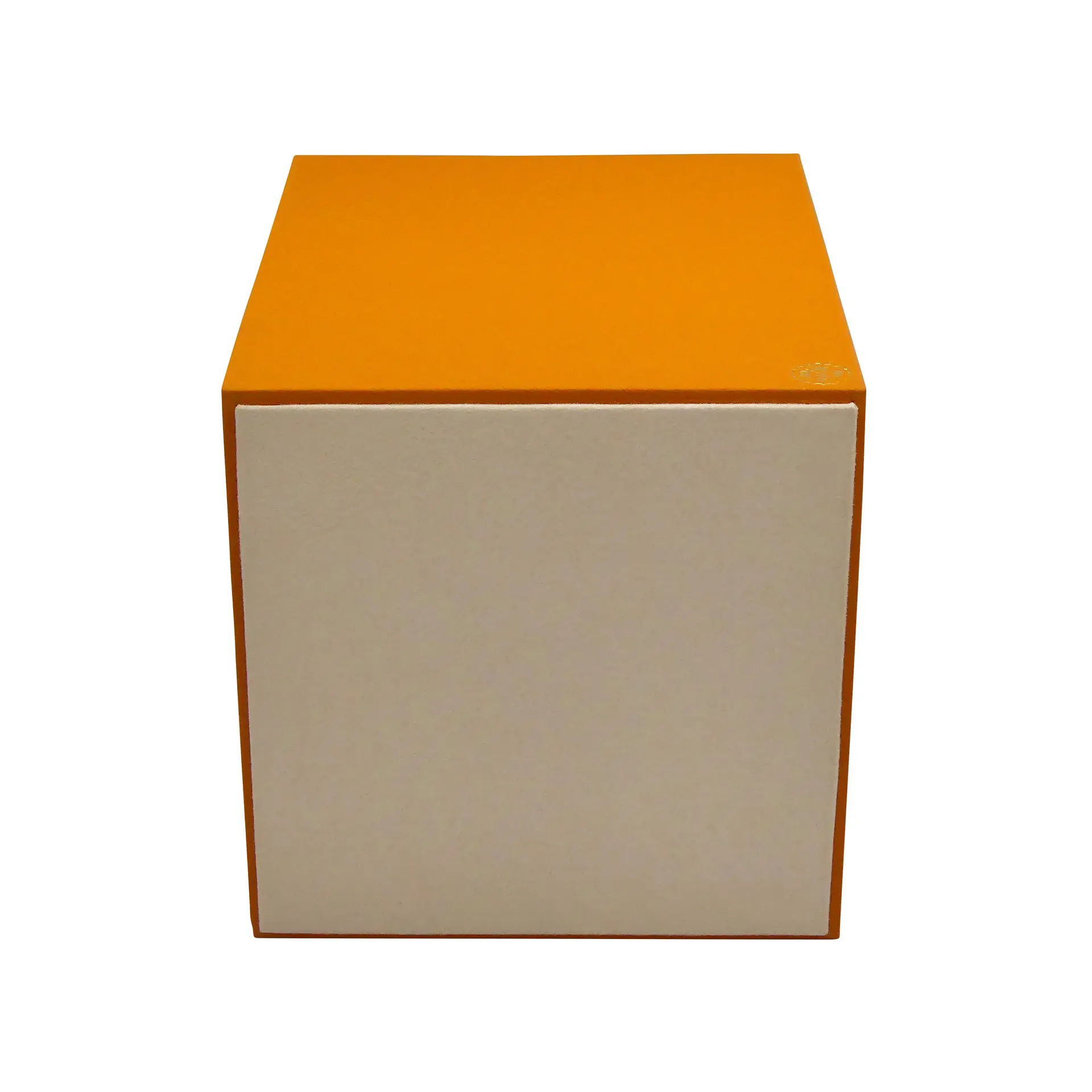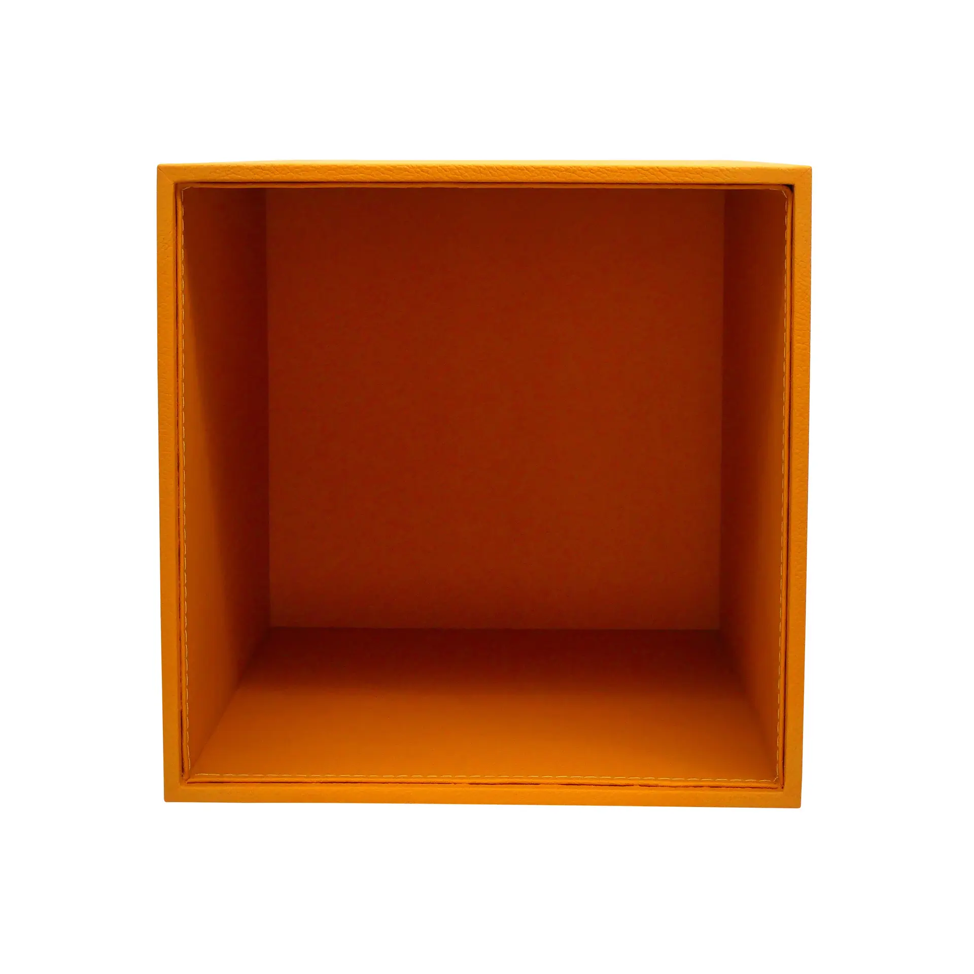 Collection Armand Orange Leather Wastepaper Basket - Size Large - 23,00cm x 23,00cm x 30,50cm - Weight : 1370 Gr - Gordon & Gaia