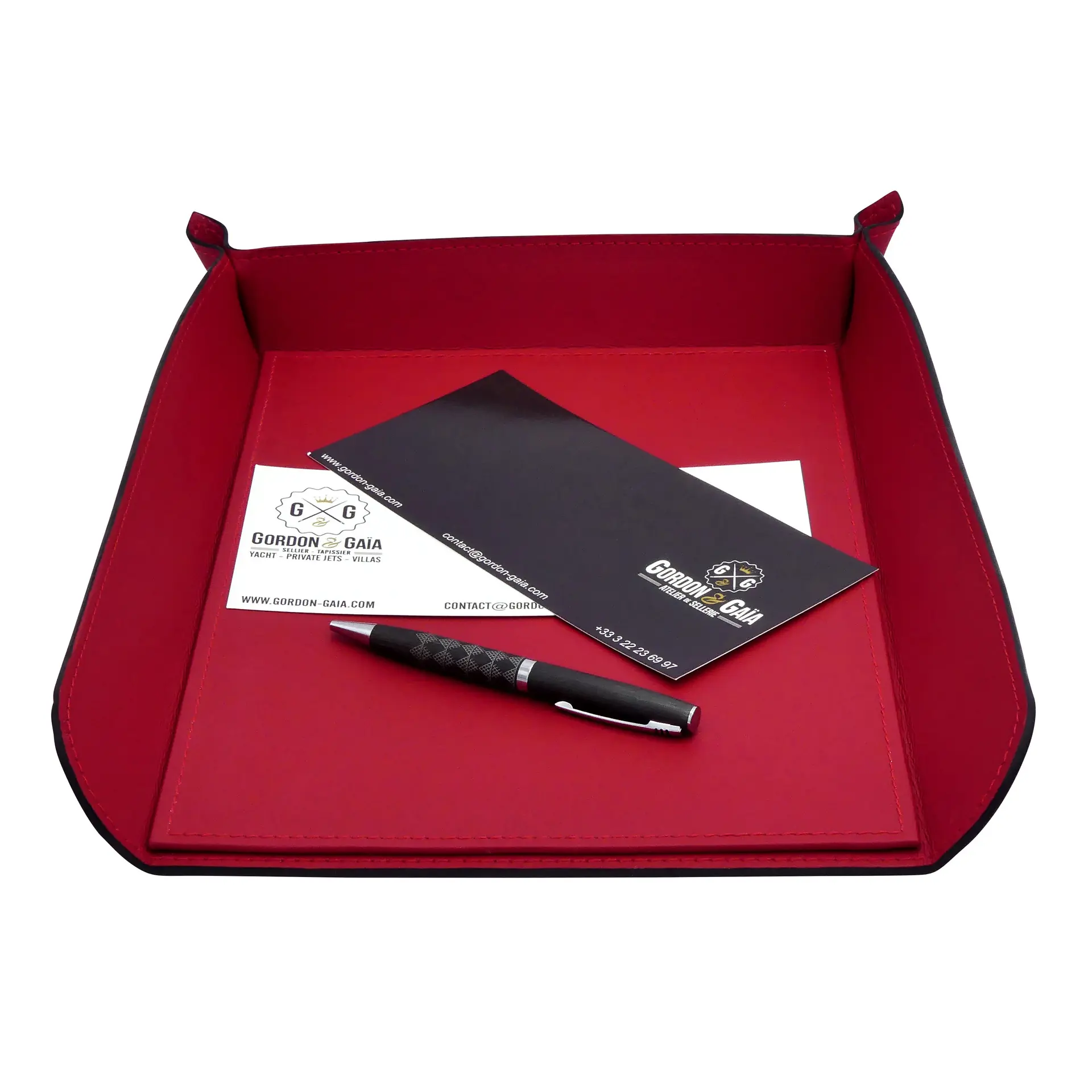 Elegant A4 leather letter tray in red, perfect for organizing your office space.