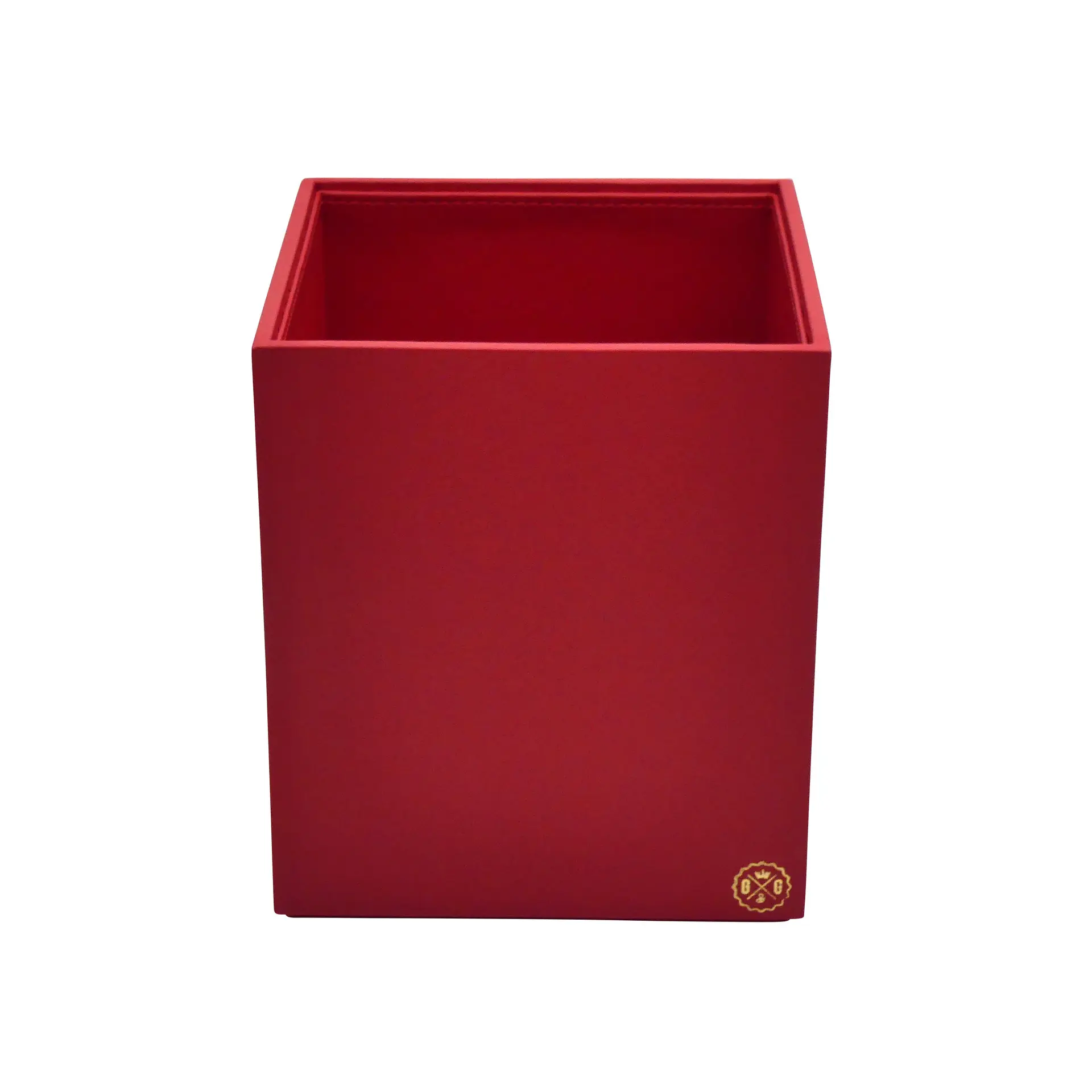Collection Armand Red Leather Wastepaper Basket - Size Medium - 20,00cm x 20,00cm x 23,50cm - Weight : 950 Gr - Gordon & Gaia