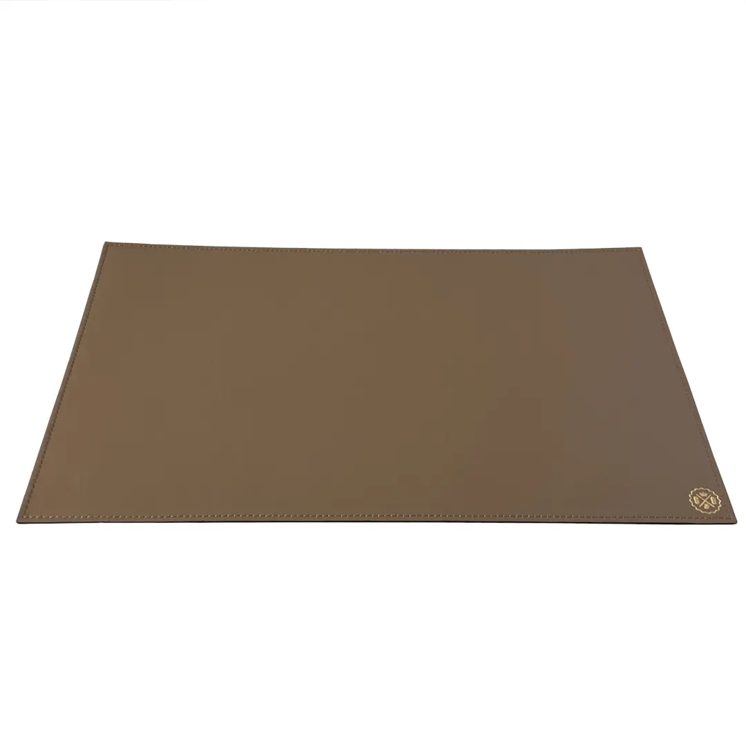 Elegant taupe gray leather desk pad, size M, perfect for enhancing your office decor.