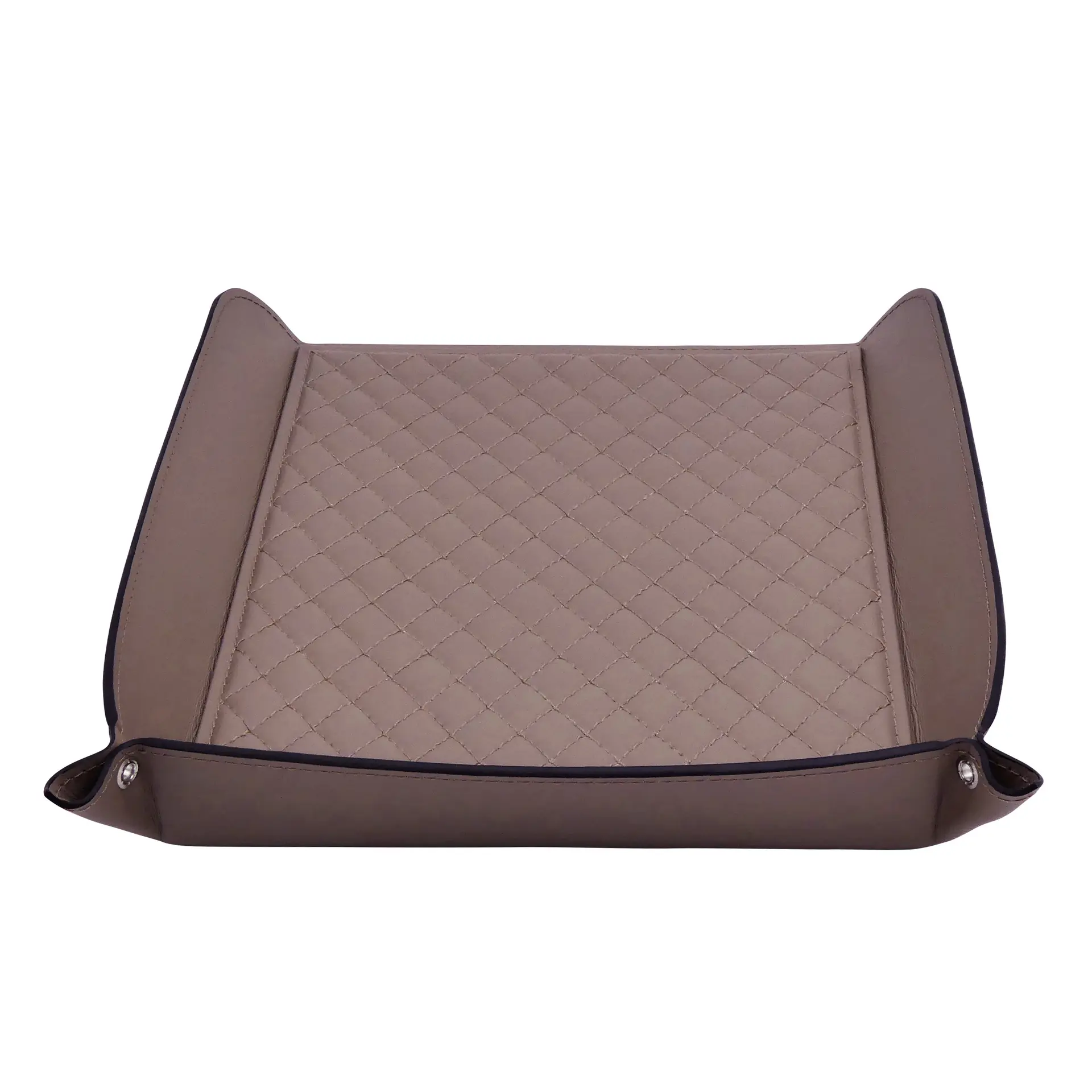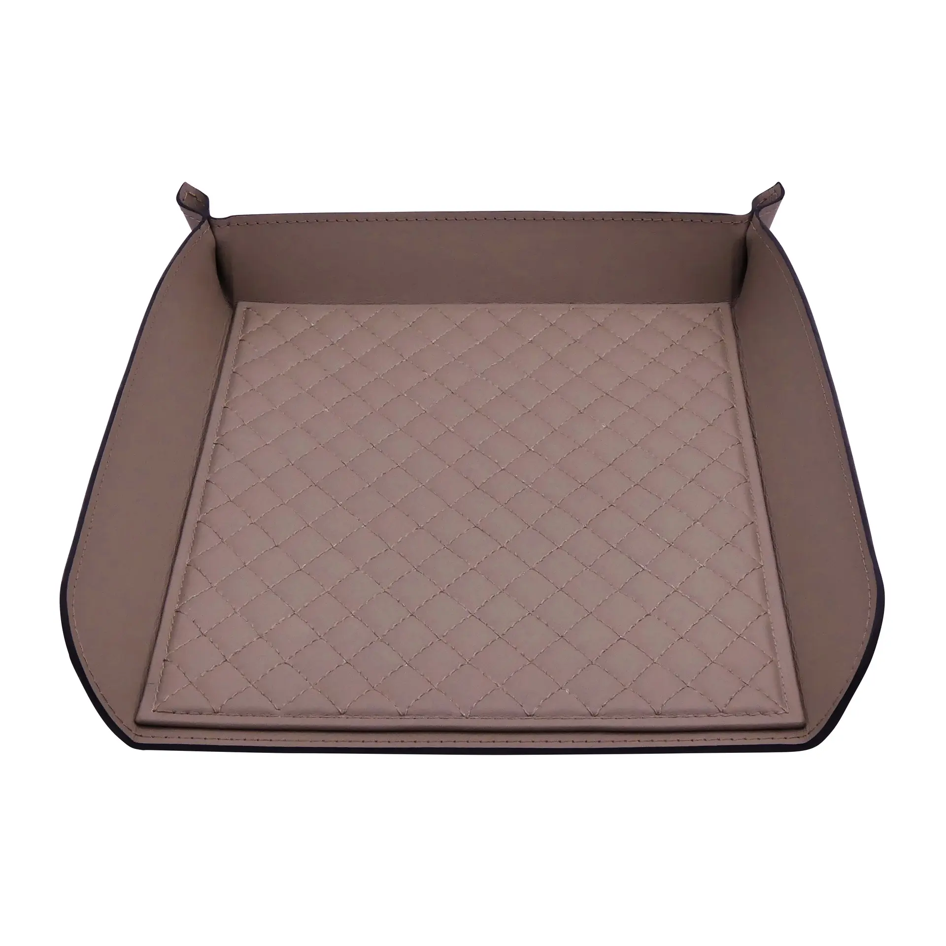 Elegant A4 leather letter tray with diamond stitching, perfect for office organization.