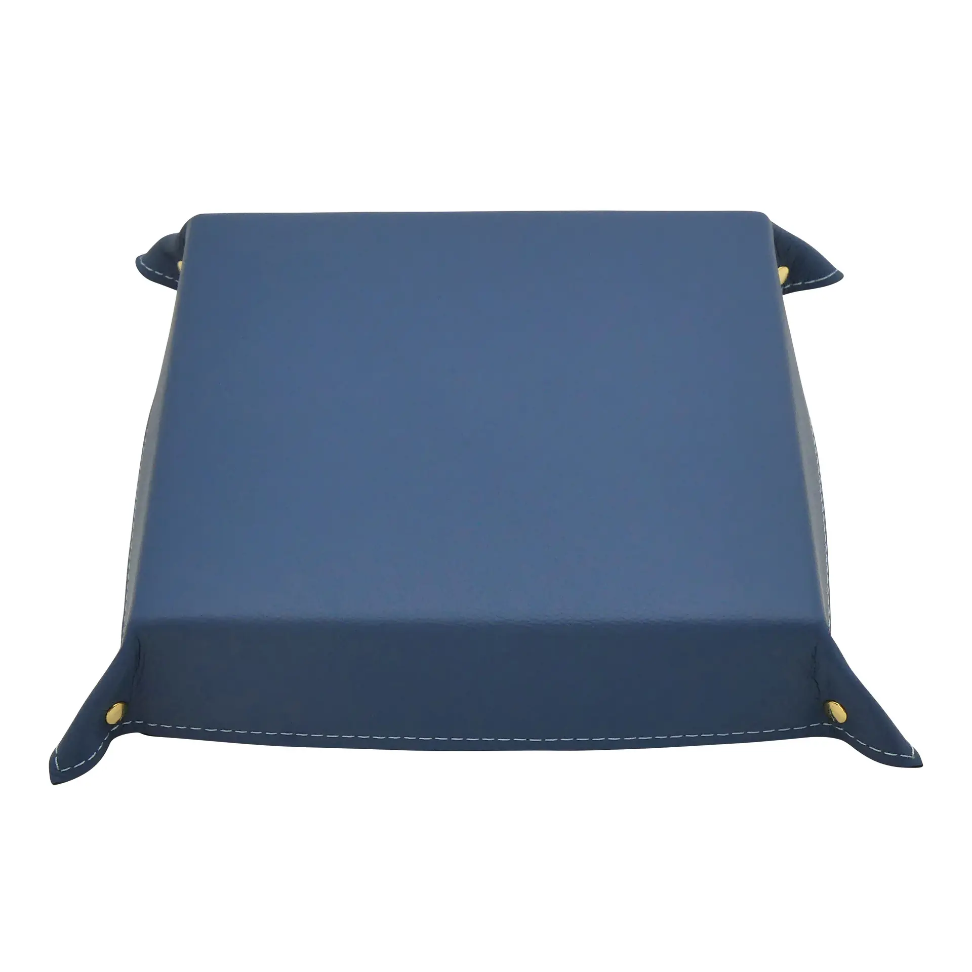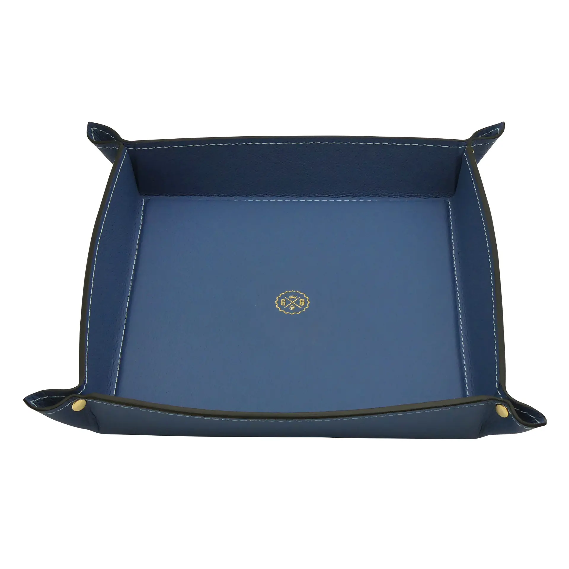 Collection Arthur - Ocean Blue Leather Valet Tray With Eyelets - Size Large - 22,00cm x 22,00cm x 4,50cm - Weight : 260 Gr - Gordon & Gaia