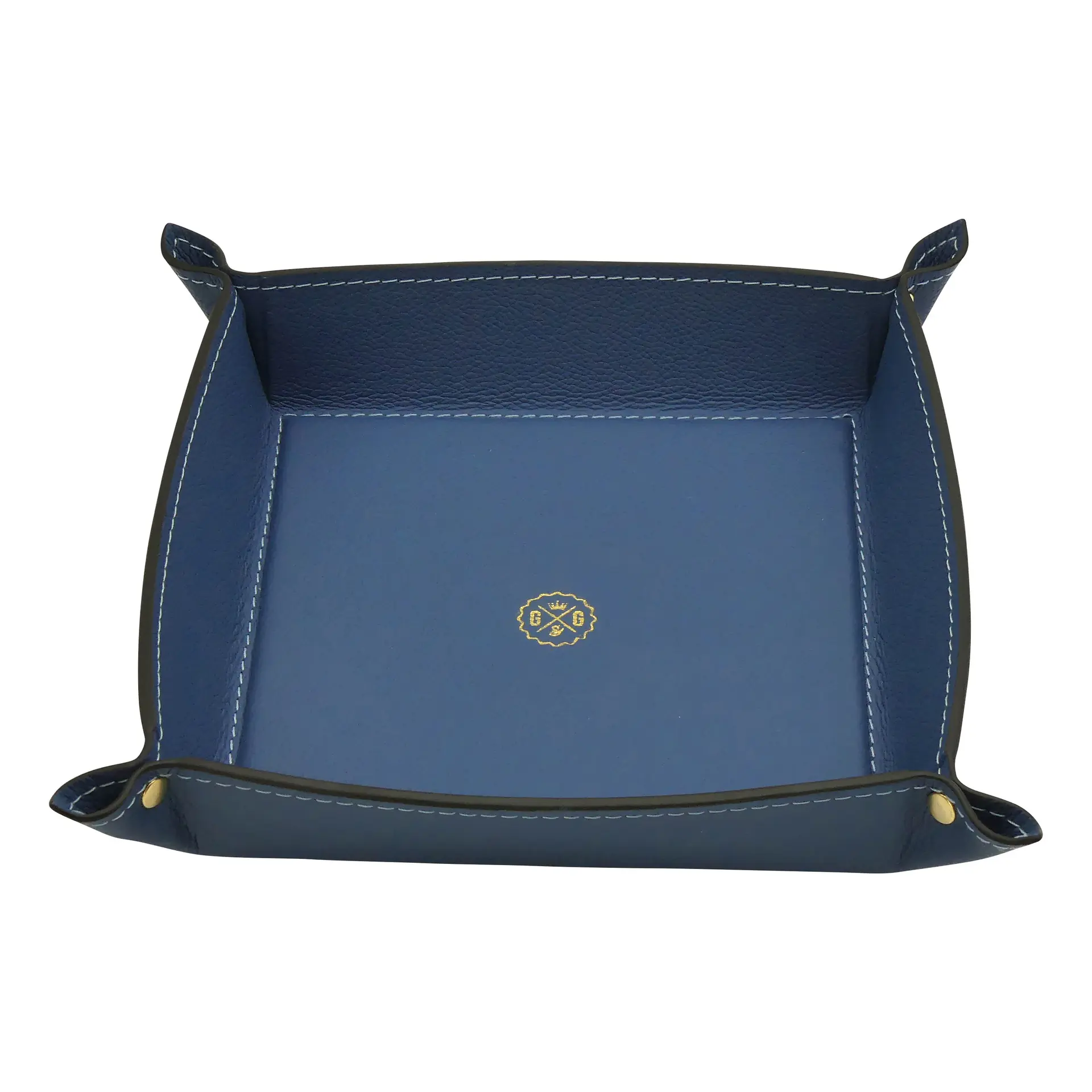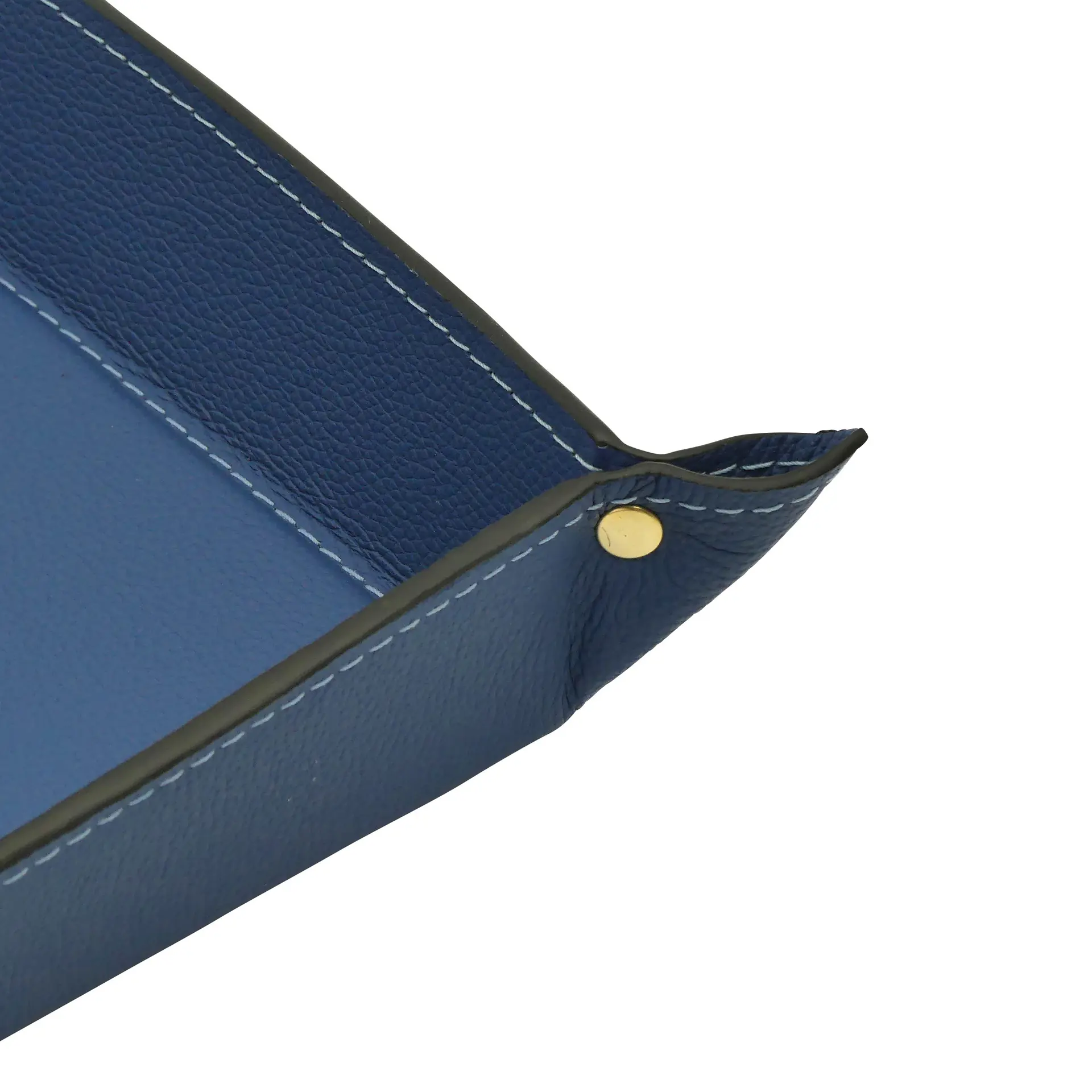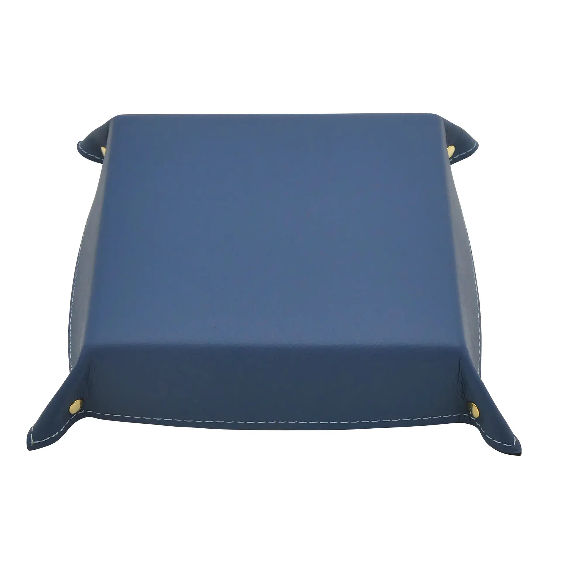 Collection Arthur - Ocean Blue Leather Valet Tray With Eyelets - Size Medium - 18,00cm x 18,00cm x 4,50cm - Weight : 200 Gr - Gordon & Gaia