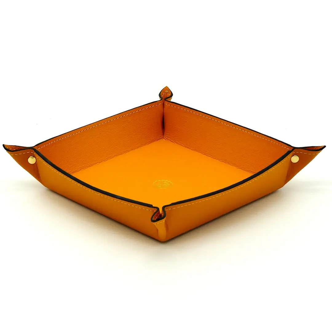 Collection Arthur - Orange Leather Valet Tray With Eyelets - Size Medium - 18,00cm x 18,00cm x 4,50cm - Weight : 200 Gr - Gordon & Gaia
