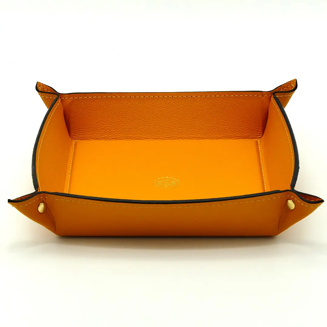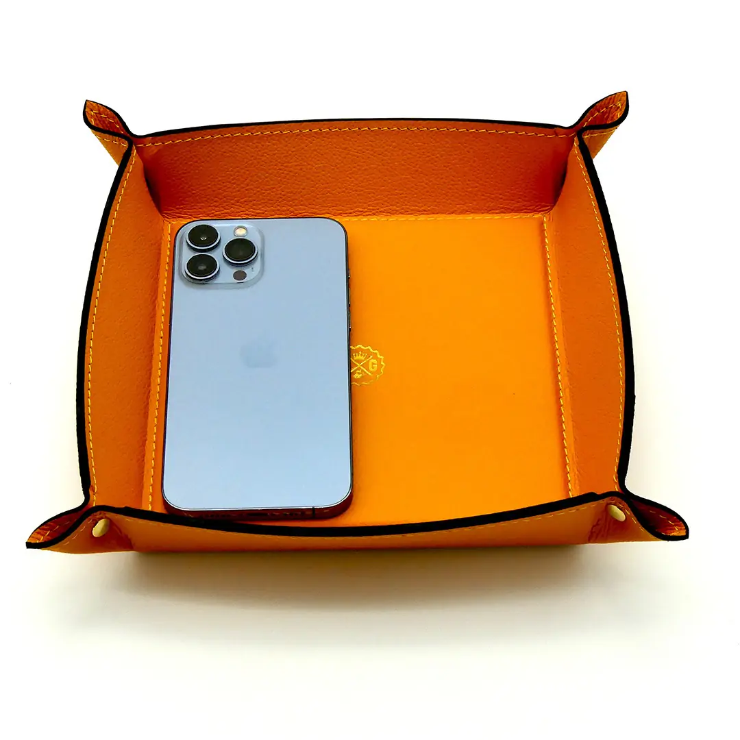Stylish orange leather valet tray, ideal for organizing your essentials in a chic manner.