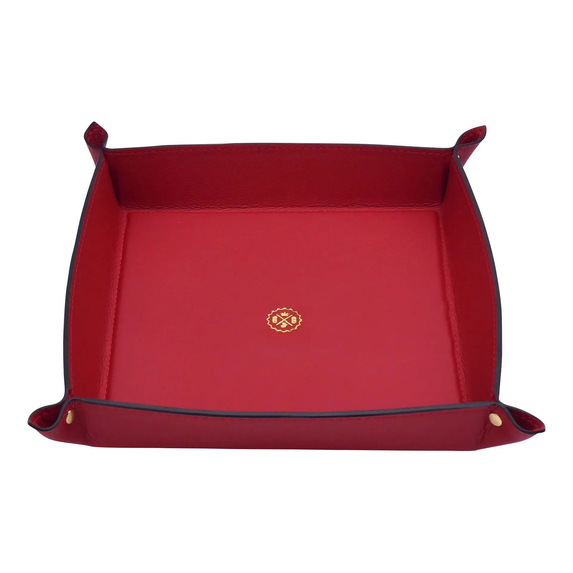 Collection Arthur - Rubis Leather Valet Tray With Eyelets - Size Large - 22,00cm x 22,00cm x 4,50cm - Weight : 260 Gr - Gordon & Gaia