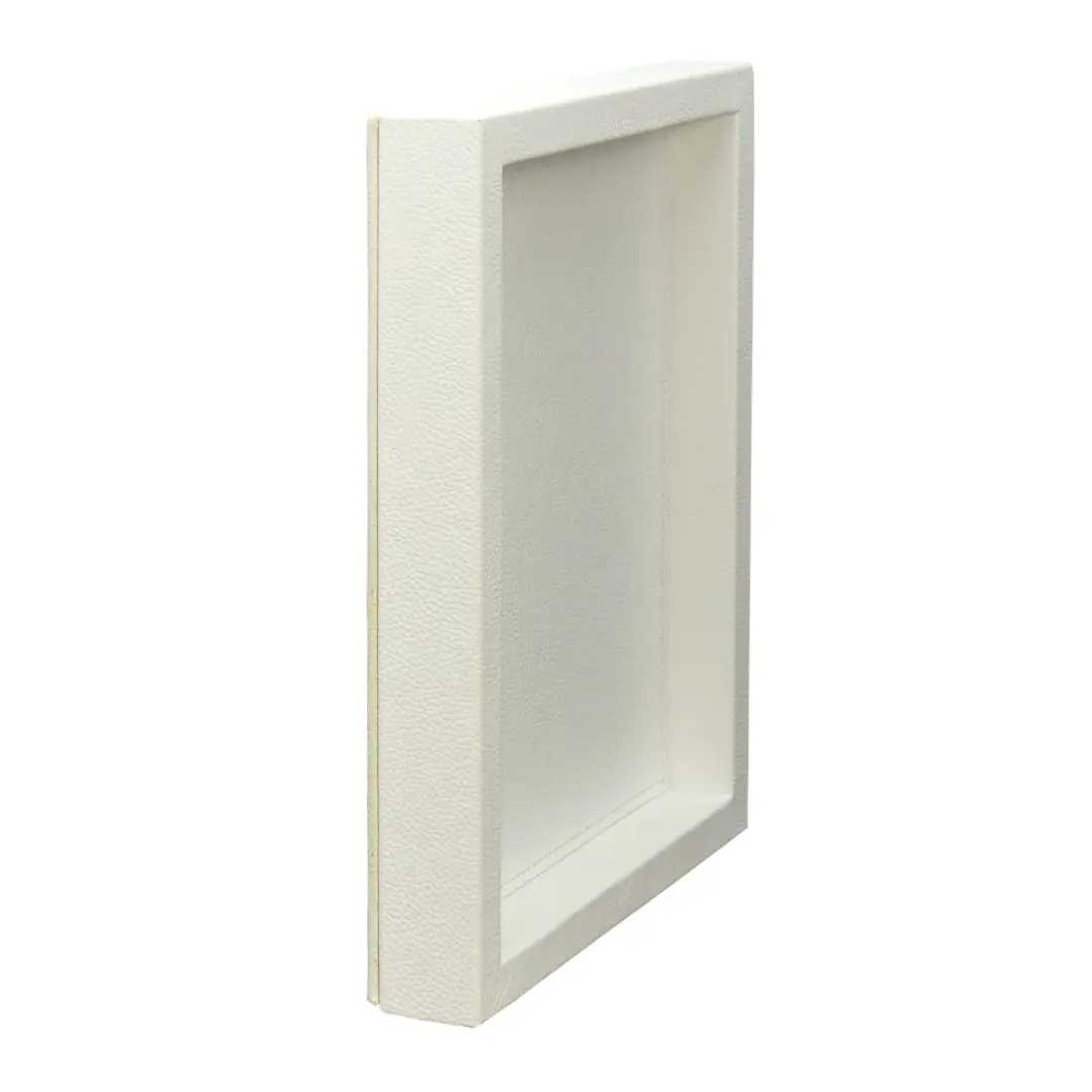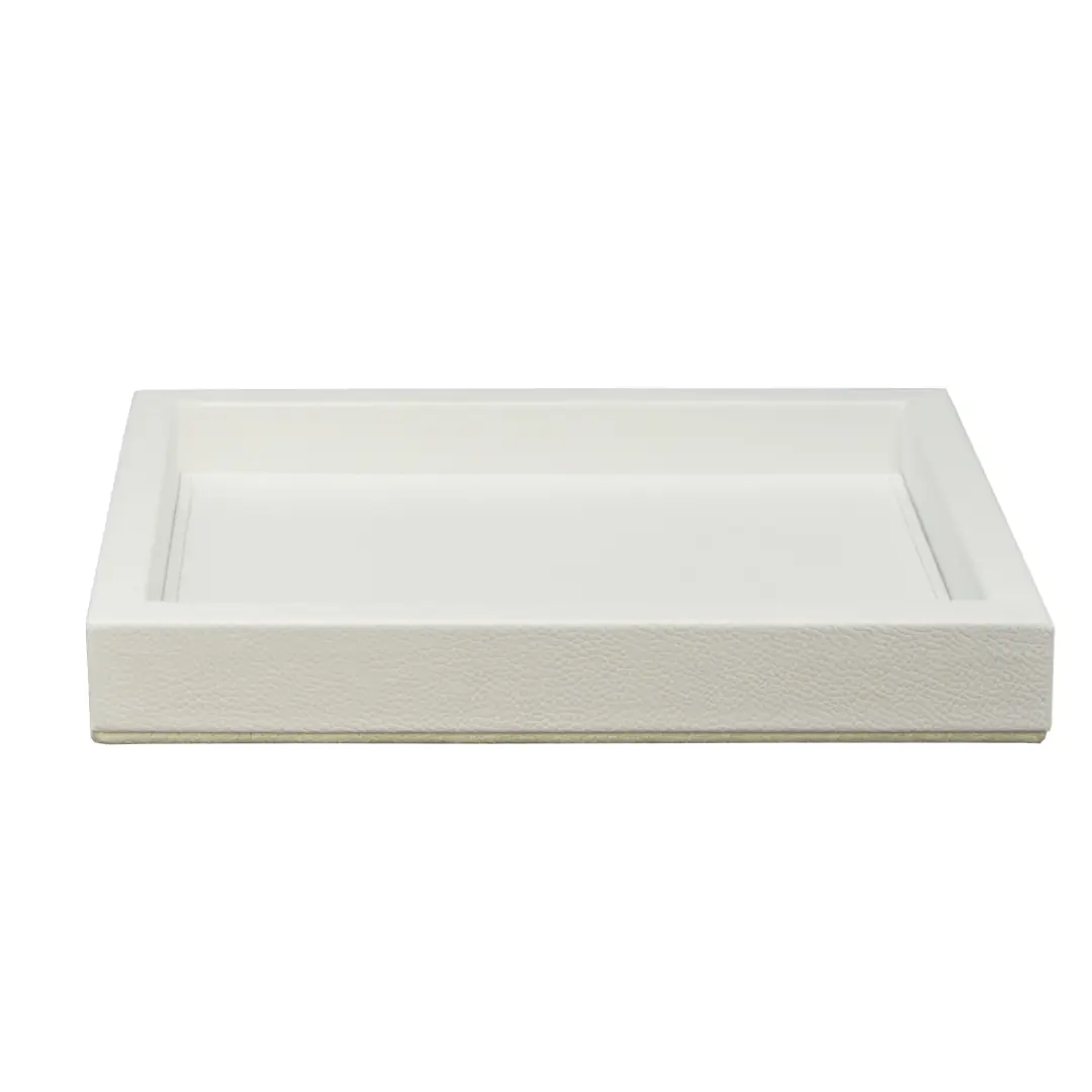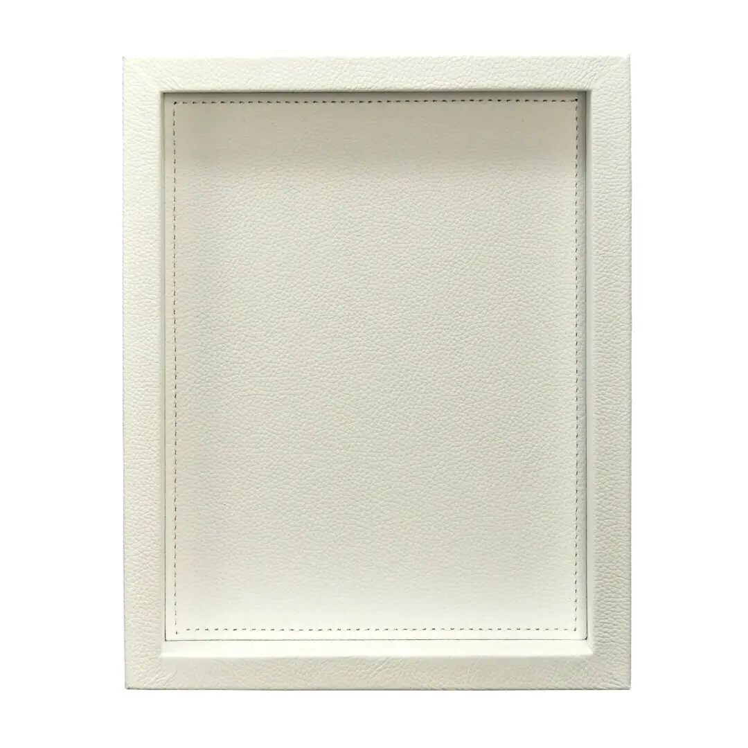 Collection Colette Rectangular Rigid Pin Tray Covered In White Grained Leather - Small Size - 25cm x 20cm x 3,5cm - Frame 1.5cm - Weight : 700 Gr - Gordon & Gaia