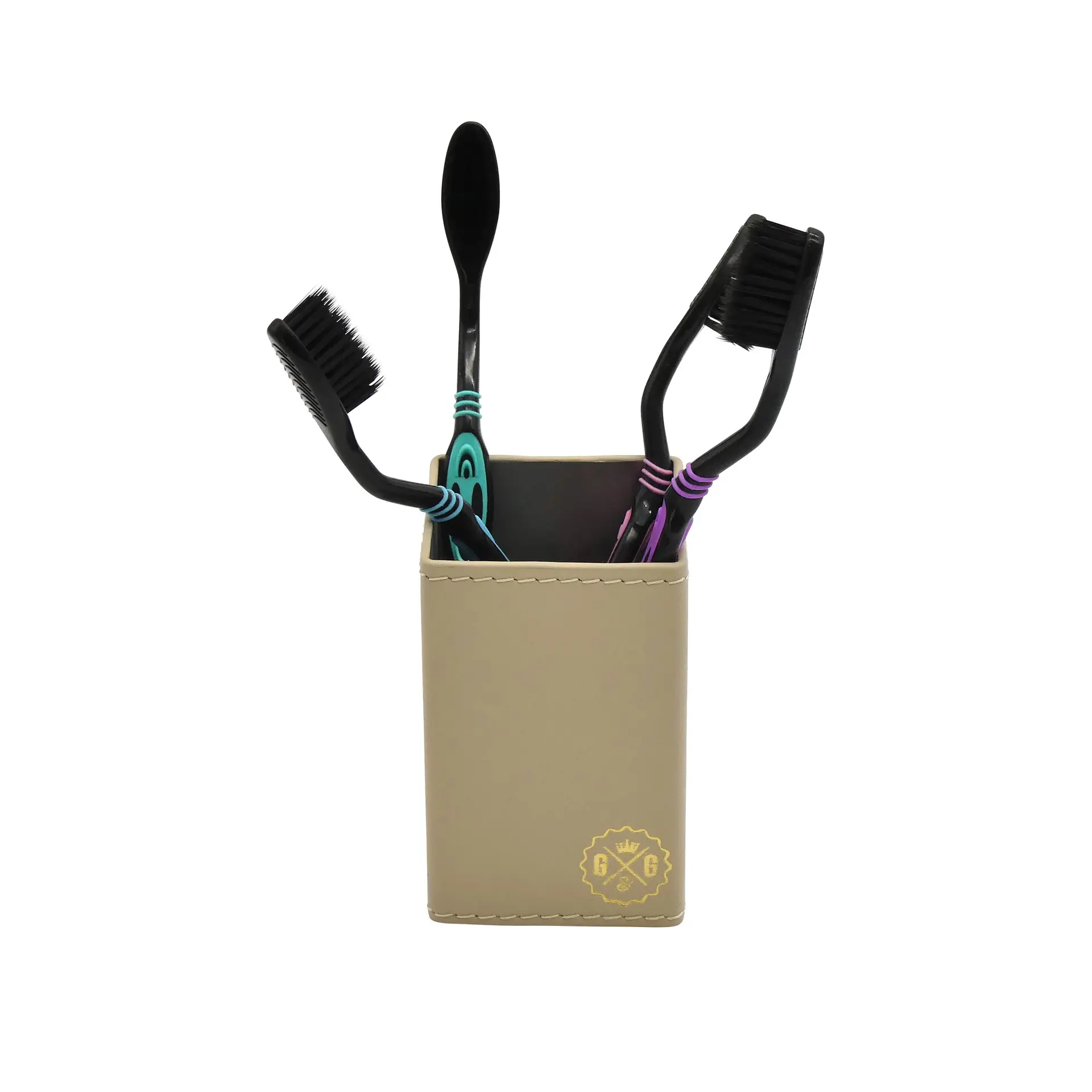 offers you a range specially designed for the bathroom. This toothbrush holder, in stainless steel (suitable for yachting) is covered in leather by our experienced leatherworkers. The assembly of the leathers by hand sewing offers a Luxury Haute Couture finish and gives a remarkable and pleasant effect to the touch. Made in France.