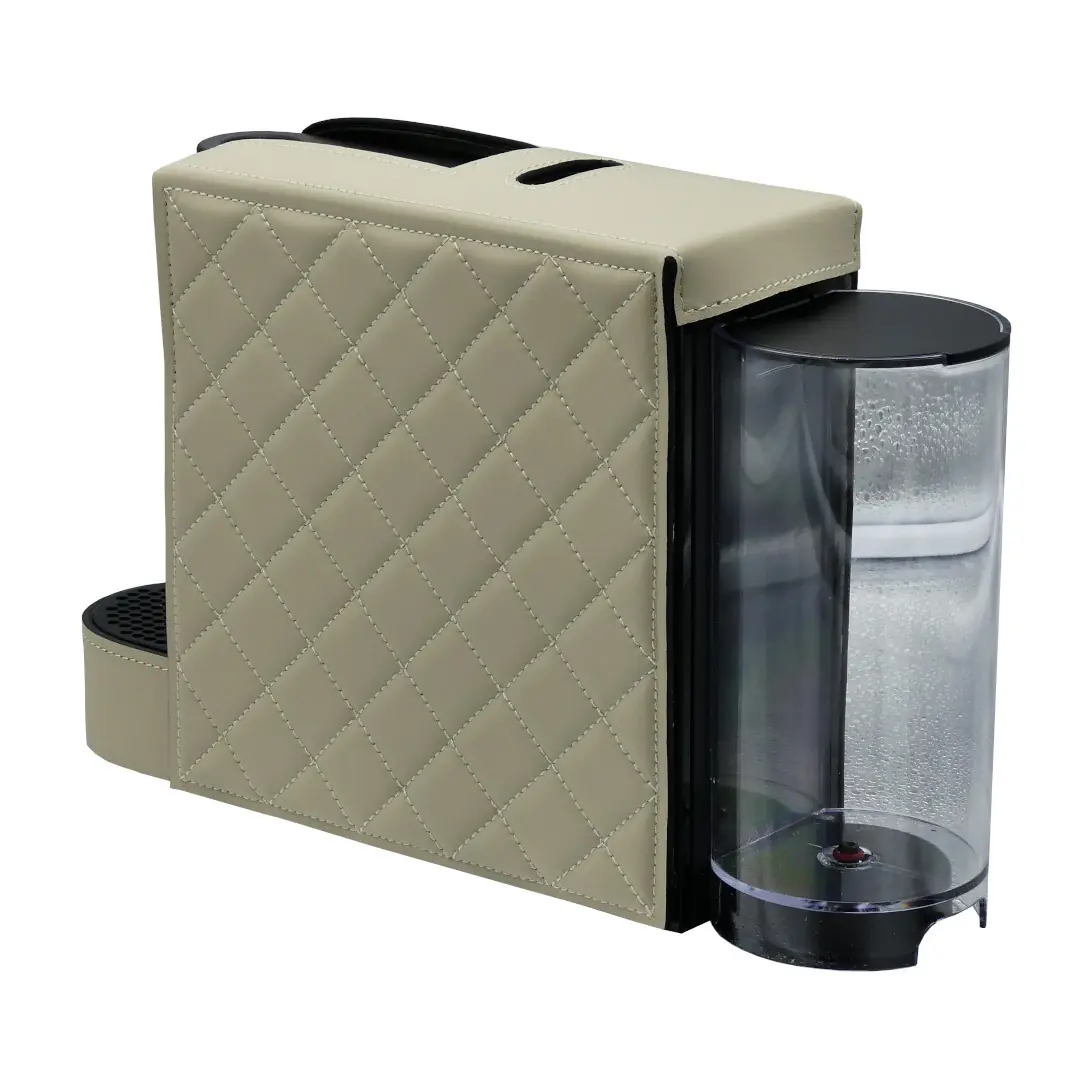Enhance your Nespresso machine with a luxurious leather cover featuring diamond stitching.