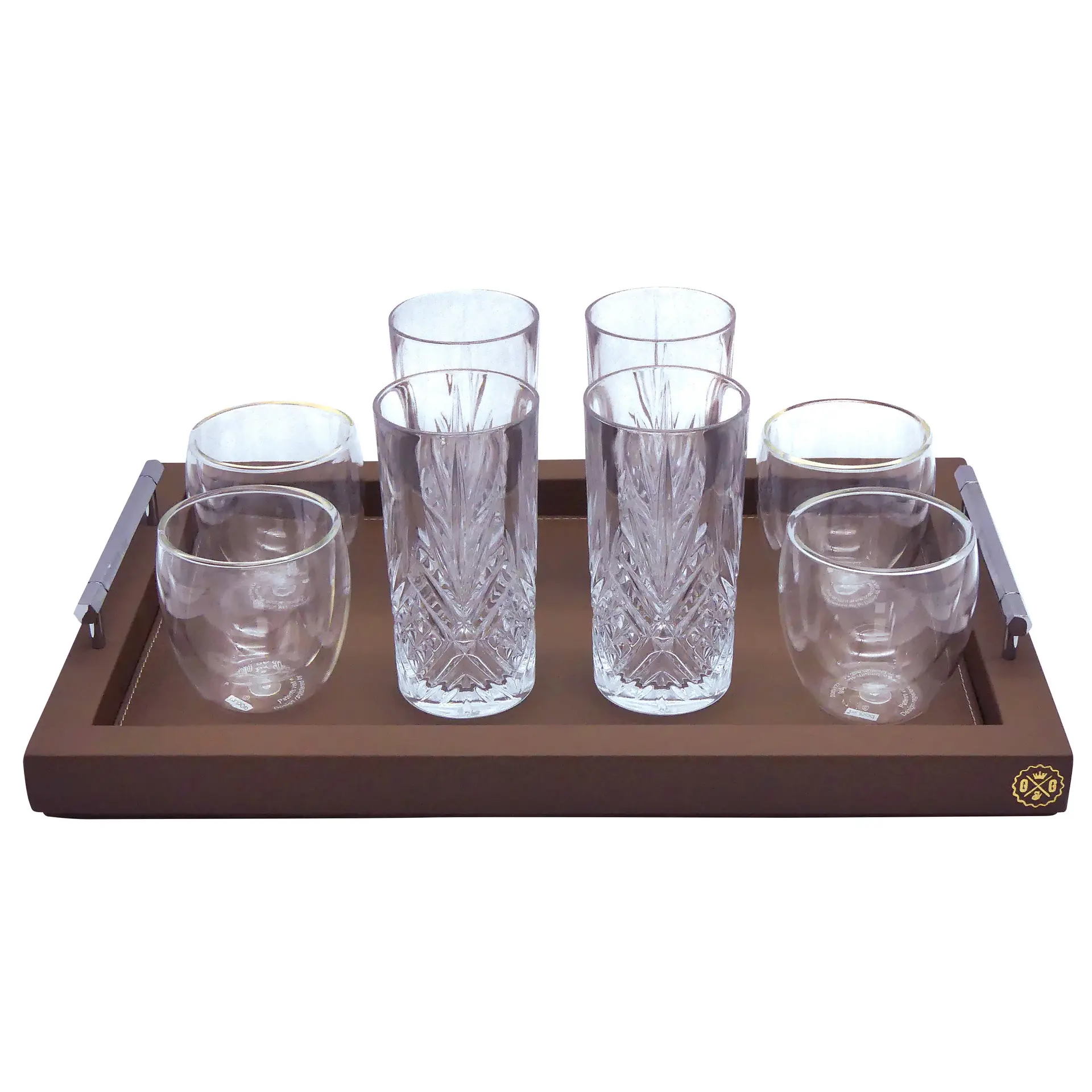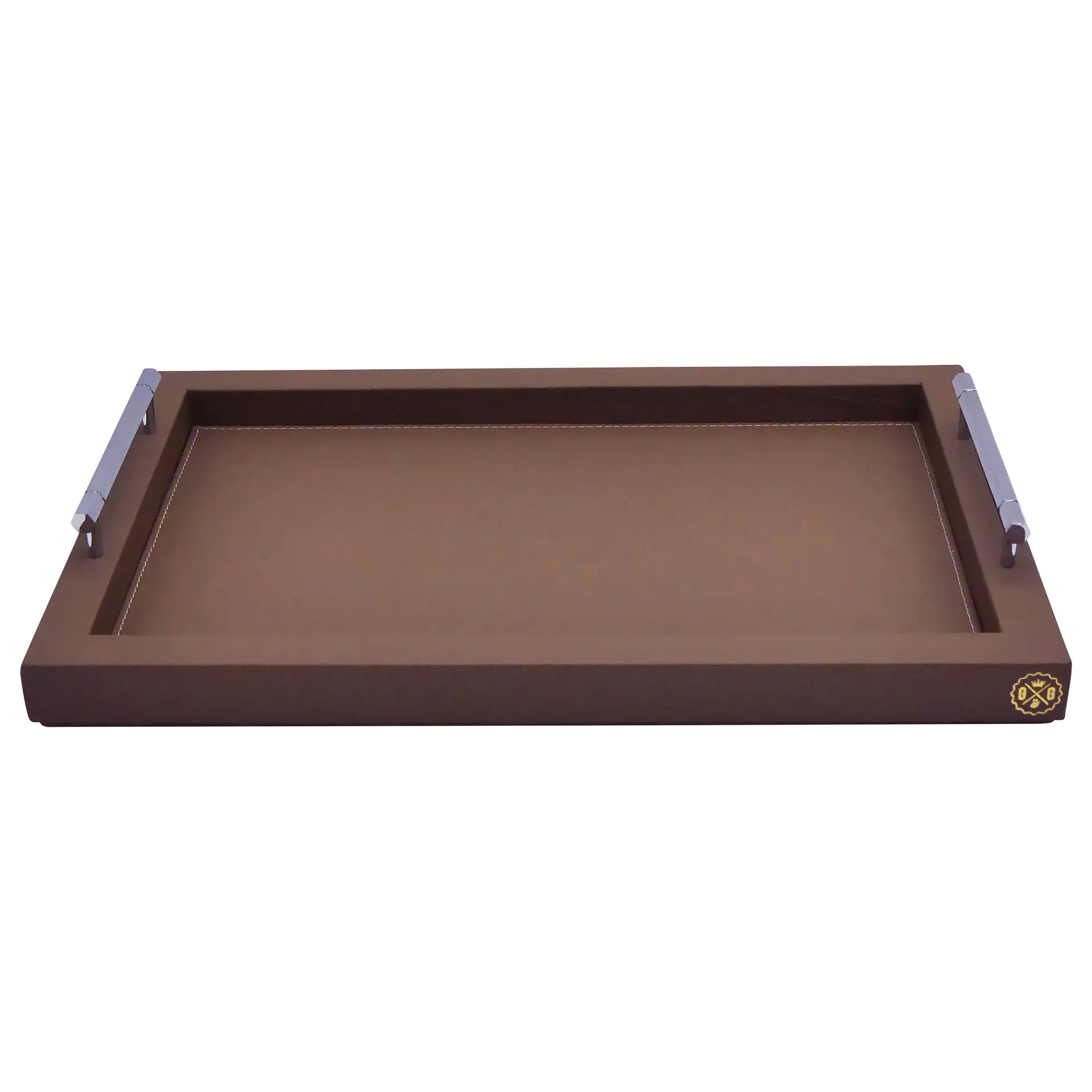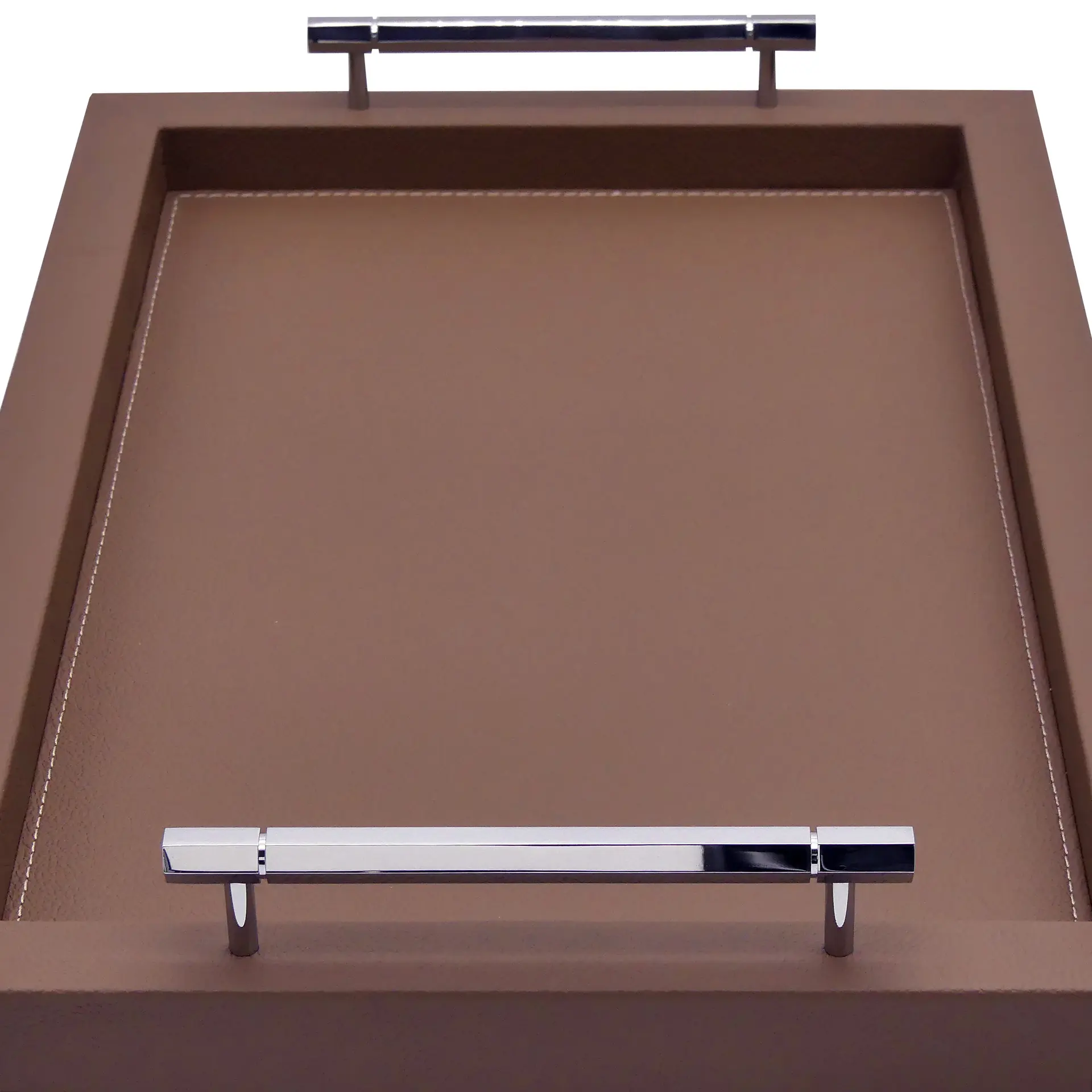 COLLECTION LOUIS offers a range of rectangular wooden trays, covered in premium grained leather, finished with solid brass handles with mirror chrome finish. Handcrafted by our qualified leatherworkers. The underside of the tray is foamed and covered with a soft felt to protect the surface of your furniture and ensure good stability. Made in france:
