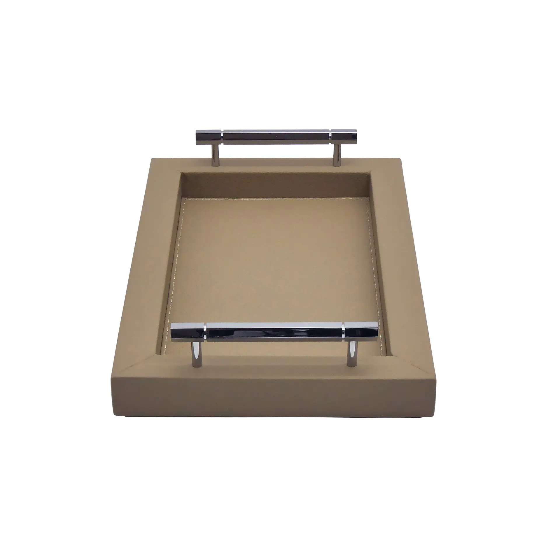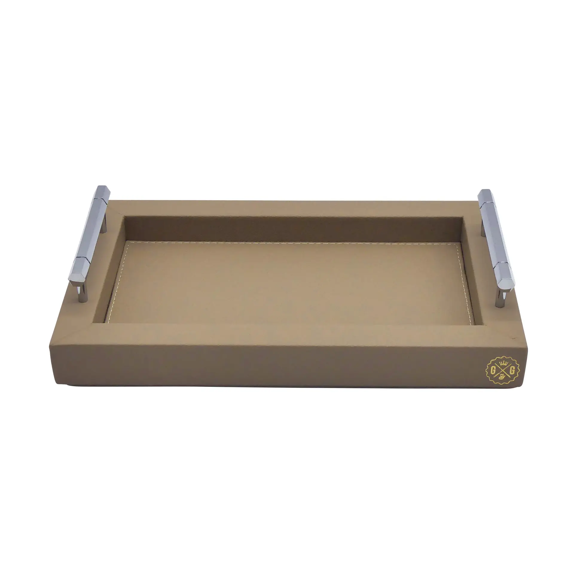 COLLECTION LOUIS offers a range of rectangular wooden trays, covered in premium grained leather, finished with solid brass handles with mirror chrome finish. Handcrafted by our qualified leatherworkers. The underside of the tray is foamed and covered with a soft felt to protect the surface of your furniture and ensure good stability. Made in france: