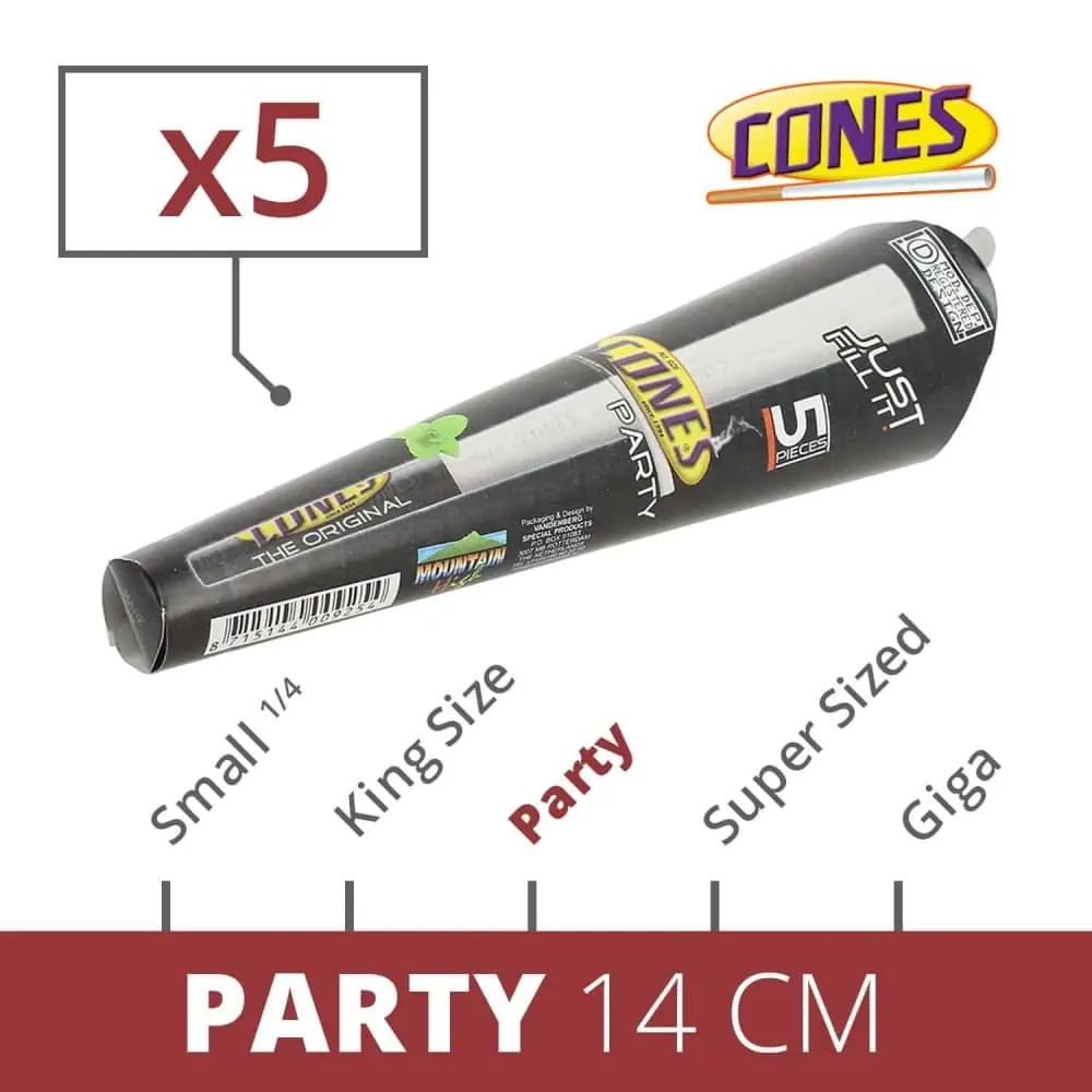party cones x 5 . 5 pre-rolled party cones made of good quality thin rolling paper and w-rolled cardboard filter. comes in a cardboard sleeve which protects the cones during transport.