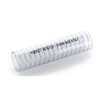 Merlett Metalflex Industrial Hose. A soft and flexible PVC hose with an embedded steel spiral for suction of industrial liquids. Features and Benefits. Smooth surface. Good flexibility. Abrasion resistance. Steel spiral. Good Crush resistance. Applications. Suitable for use in the agriculture, transport, marine, building and general industry.
