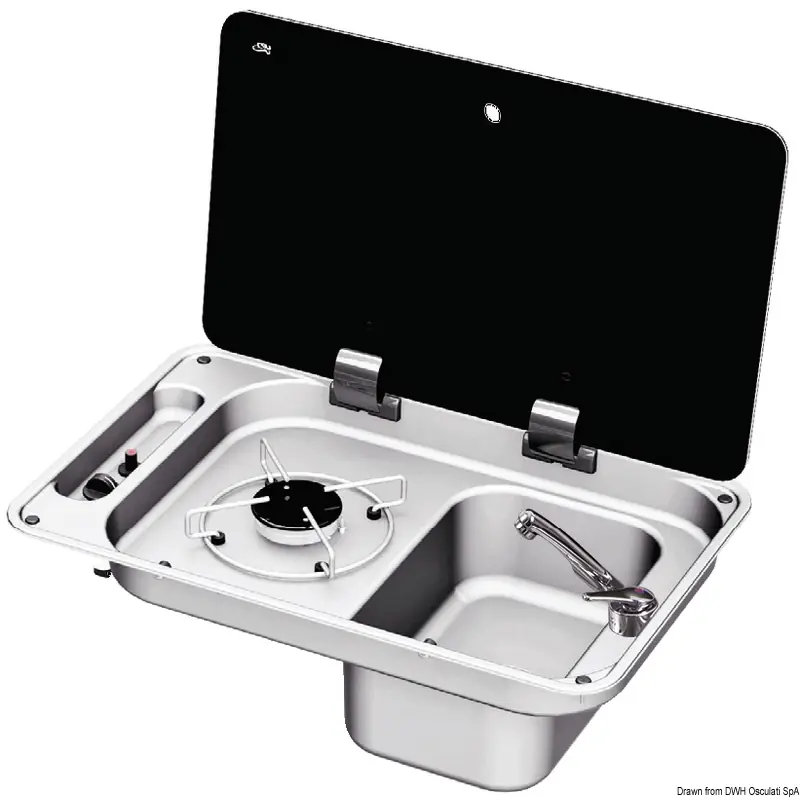 Efficient 2-burner hob with sink, perfect for marine kitchens.