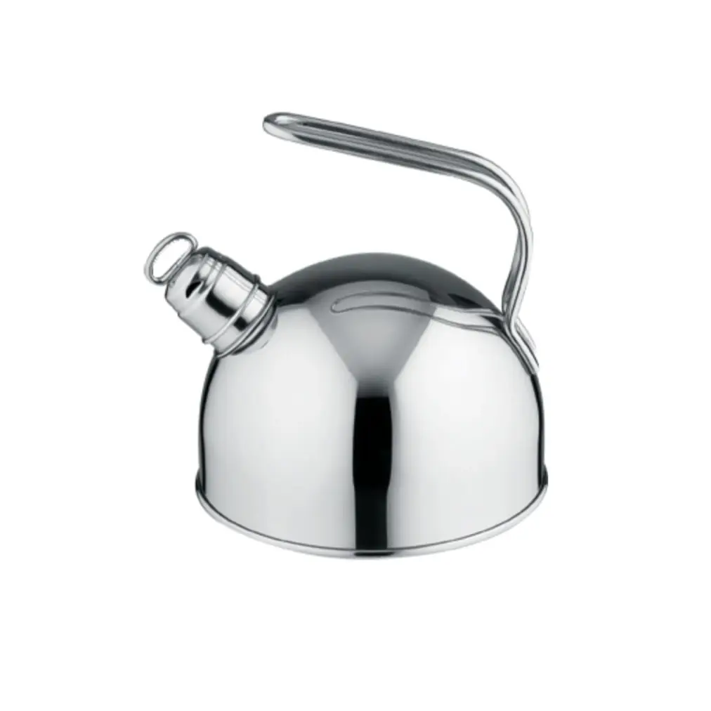 1.8 liter whistling kettle in 18/10 stainless steel, compound bottom, black Bakelite handle and whistle, plug filling only.