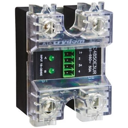 The Crydom Evolution Series Solid State Relay offers reliable 50A control with panel mount design and LED indicators.