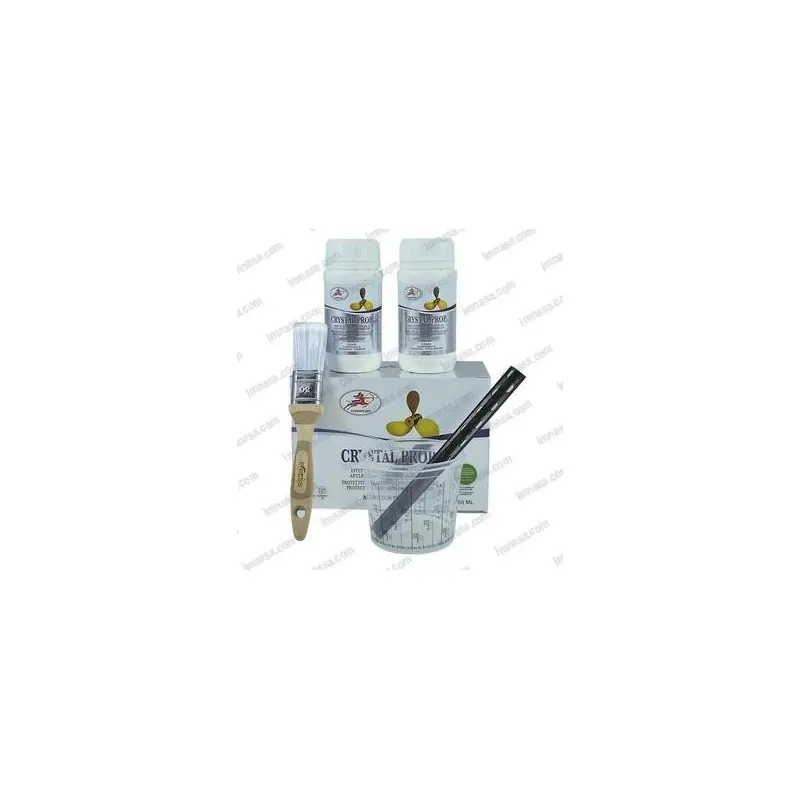 Protect your vessel's propellers and shafts from marine fouling with the Crystal Prop patent kit of 100ml. This transparent antifouling coating is designed to prevent organism adhesion, thus enhancing performance and longevity of propulsion systems.