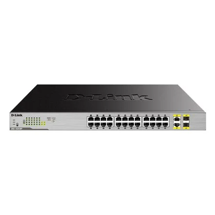 26 Port Gigabit Max PoE SwitchDGS-1026MPThe D-Link DGS-1026MP 26-Port Gigabit Max PoE Switch enables users to easily connect and power PoE-capable devices such as wireless access points (APs), IP cameras, and IP phones.Power over EthernetThe DGS-1026MP features 24 10/100/1000BASE-T ports that support the IEEE 802.3at PoE+ standard. Each of the 24 PoE ports can supply up to 30 W, with a total PoE budget of 370 W.The PoE usage LEDs further provide real-time feedback on the current PoE power usage on the network and helps plan out the PoE network budget, preventing PoE overloading problems. Expand Your NetworkWith 2 x Gigabit combo uplink ports, businesses have additional flexibility their network deployment, offering a choice for upstream or downstream server connections via a fibre or copper interface.Energy EfficientTo help small businesses save on operating costs, the DGS-1026MP supports IEEE 802.3az Energy Efficient Ethernet (EEE). This feature actively monitors network traffic and automatically puts ports that are not being used into hibernation, powering them on only when they are required.Hassle-Free SetupThe DGS-1026MP is a plug-and-play device that requires no configuration, so setup is simple and hassle-free. Simply connect the switch to the network and then connect multiple computers, share files and make VoIP calls across the network.