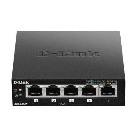 D-Link 5-Port Fast Ethernet PoE Unmanaged Desktop Switch, Unmanaged 5 Port Ethernet Switch With PoE EU - DES-1005P/E