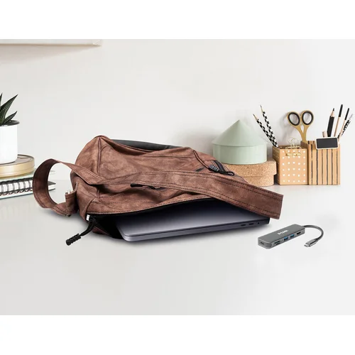 Add a second screen at up to 4K resolutionsConnect a second display to the 4K HDMI port for video up to 4K resolution with no lagSuperSpeed USB 3.0Transfer data at 5 Gbps. Ideal for transferring from USB drives, phones, tablets, cameras, and other peripherals.Plug and PlayAdd more available ports simply by plugging the hub into a USB-C port. No additional software required.Power DeliveryDeliver up to 60W of power through the hub to your laptop by connecting your USB-C charger to the USB-C port.Thunderbolt 3Use the Thunderbolt 3 port to transfer data, deliver power, or extend your display in seconds.Strong housingCompact, lightweight design in space grey, with aluminium alloy housing.Dual-Slot SD Card ReaderInstantly connect SD/microSD/SDHC/SDXC cards to the hub and make fast data transfers of photos and videos.Use one port. Connect to everything.Instantly add a second display, a dual-slot SD and microSD card reader, two USB 3.0 ports, and a USB-C port to your laptop simply by plugging the hub into any USB-C port.Plug into a reliable docking station. Unplug for instant remote working.Enjoy a premium docking station experience simply by plugging the hub into a single USB-C port on your computer. You can extend your monitor to a second screen, transfer files from SD cards and USB 3.0 devices, and charge your laptop, all at the same time. Need to work remotely? Simply unplug the hub’s single cable and you’re ready to go with your laptop.Ready to transfer your close-ups.Reliably bulk transfer any files from your SD or microSD card to your computer using the hub’s built-in dual-slot SD/microSD card reader. Perfect for quickly downloading camera photos and video footage to a phone, tablet, or computer without using any of your camera’s battery power.Easy to use everywhere. No setup at all.The space grey, strong aluminium alloy housing protects the high-quality chipset inside and makes the hub ready for any situation, whether you’re at home, the office, or travelling.Plug and play convenience allows you to use the hub straight away and with any Mac, Windows or Linux computer with a USB-C port. There are no drivers to install, and there’s no complicated software setup at all.Extend your screen to a vivid 4K monitor.Plug into the hub’s HDMI port to instantly mirror or extend your display to a second monitor with vibrant 4K resolution. And full backwards compatibility means you can connect to a 720p or 1080p monitor.Send power through the hub.With the Power Delivery feature, you can charge your laptop at the same time as connecting to your USB peripheral devices. Simply connect your USB-C charger to the hub’s USB-C port to provide power through the hub and to your laptop.