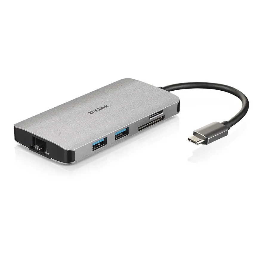 Connect to everything with the D-Link DUB-M810, an 8-in-1 USB-C hub featuring HDMI, Ethernet, and card reader.