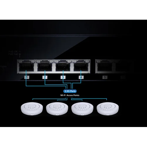 More ports. Multi-Gigabit Ethernet.Maximise network throughput with 2.5Gbps Multi-Gigabit Ethernet on each port of this compact 8-port switch. Whether it’s to connect to your core or create a network between devices, now you can easily start sharing an internet connection, files, music, and video, or for gaming without bottlenecks.2.5 Gigabit EthernetSave time transferring large files and improve sharing and productivityEffortless multi-Gigabit networkingEasily upgrade or extend your home or small business networkCompact Metal HousingSturdy, compact metal housing with fanless design for silent operationEnergy Efficient DesignAutomatic power saving features to reduce power usagePlug-and-pay convenience.The DMS-108 is a plug-and-play device that requires no configuration to get started. Plug-and-play makes it easy to instantly create a network without any technical knowledge.Effortless traffic optimisation.With 2.5 Gigabit transfer speeds from every port, you can rapidly transfer files between connected servers and network attached storage (NAS) to computers. The Quality of Service (QoS), and Flow Control features automatically prioritises important data for efficient delivery. And the IGMP Snooping function reduces unwanted multicast traffic so you can enjoy seamless video streaming and IPTV viewing experiences.Designed for life, built to last.The DMS-108 has a sturdy and compact metal housing to ensure the product can withstand wider operating temperatures by helping to dissipate heat and reduce stress on internal components.Energy Saving.The DMS-108 is designed with energy efficiency in mind. The fanless design eliminates a common point of failure and means the switch can be placed virtually anywhere and operate silently. The Link Status detection feature of the switch saves power by automatically powering down ports that are inactive or not connected, and it supports the IEEE 802.3az Energy-Efficient Ethernet standard.Ready for Wi-Fi 6.You can add a Wi-Fi 6 Access Point to your network to any of the 2.5 Gbps ports to maximise throughput and speed. Multi-Gigabit Ethernet eliminates potential bottlenecks with Wi-Fi 6 Access Points, allowing your network to take full advantage of the efficiency and speeds provided by Wi-Fi 6.