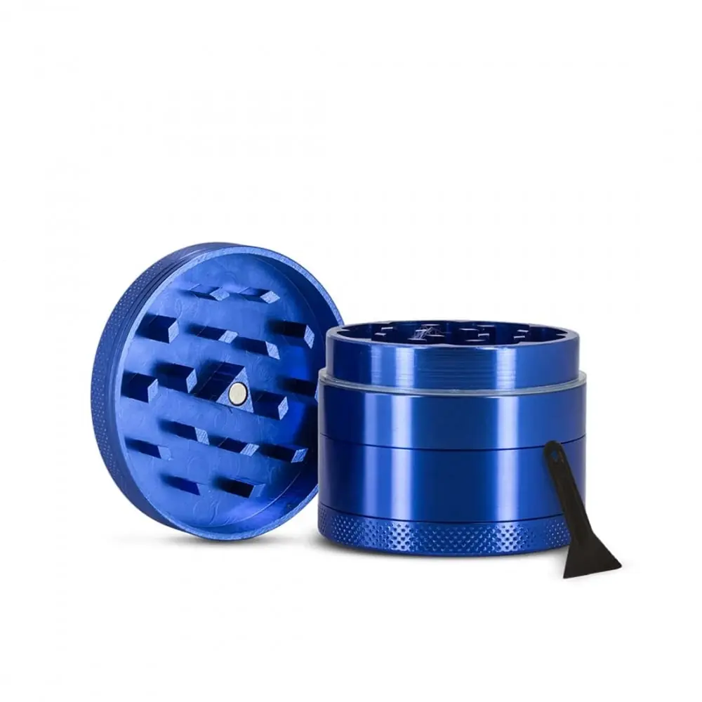 Efficient 4-part aluminum grinder in blue, designed for optimal performance and durability.
