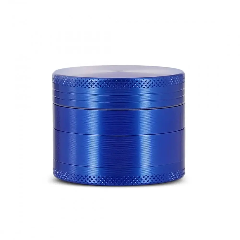 Magnetic grinder with 50 mm blue filter. Deluxe blue anodized aluminum grinder. A magnetic grinder lid. An unscrewable grinder. A container with integrated sieve. A basis for recovery. Diamond grinding tip for more efficiency. A plastic squeegee.