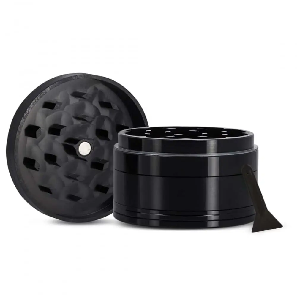 - Deluxe black anodized aluminum grinder.
